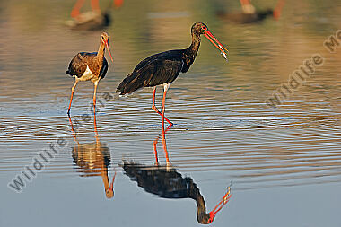 Großtrappe balzender Hahn mit Henne im Hintergrund