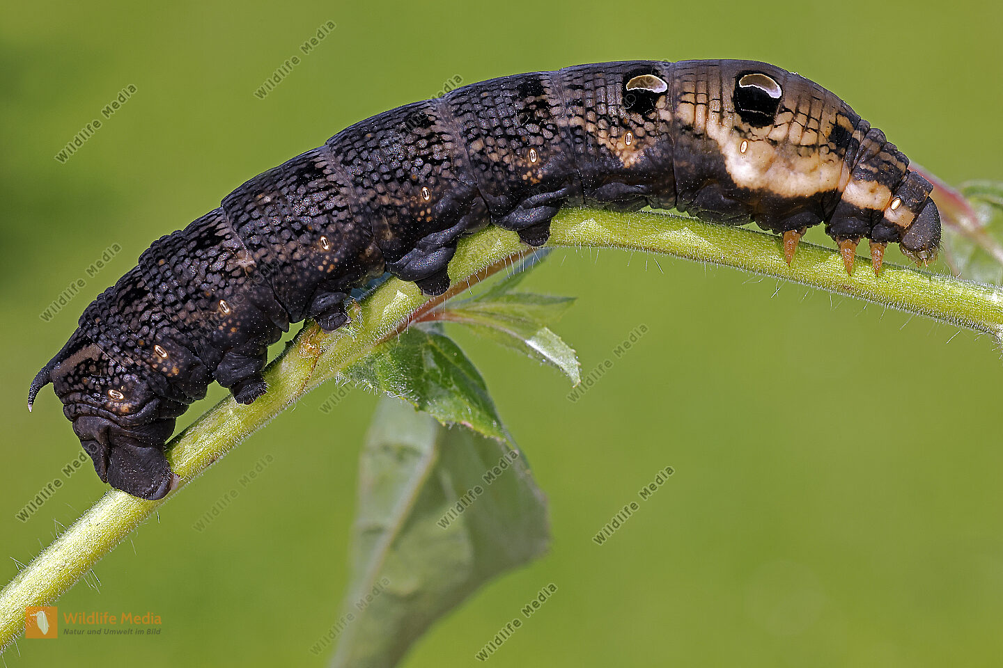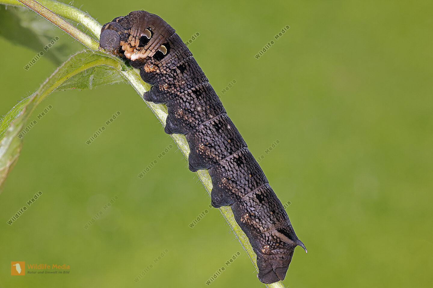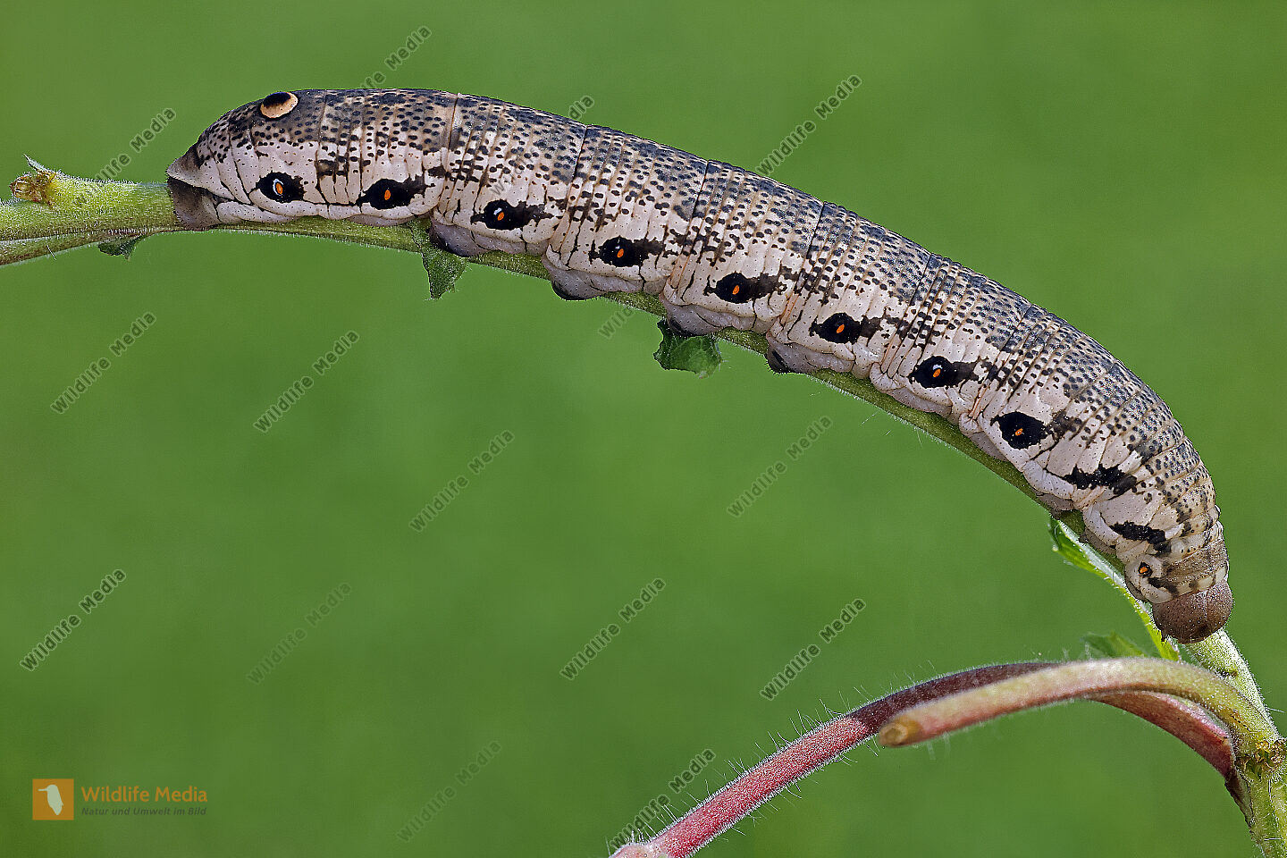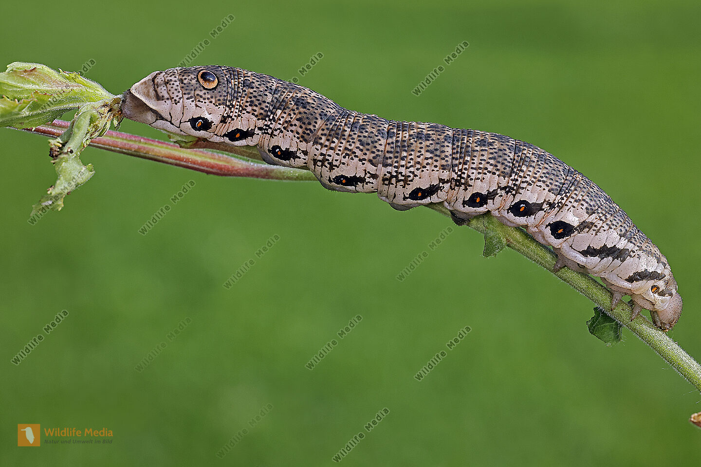 Mittlerer Weinschwärmer halberwachsene Raupe
