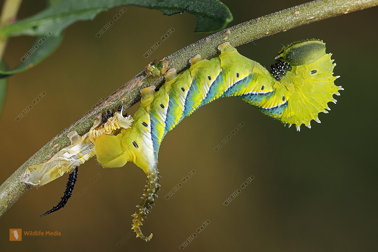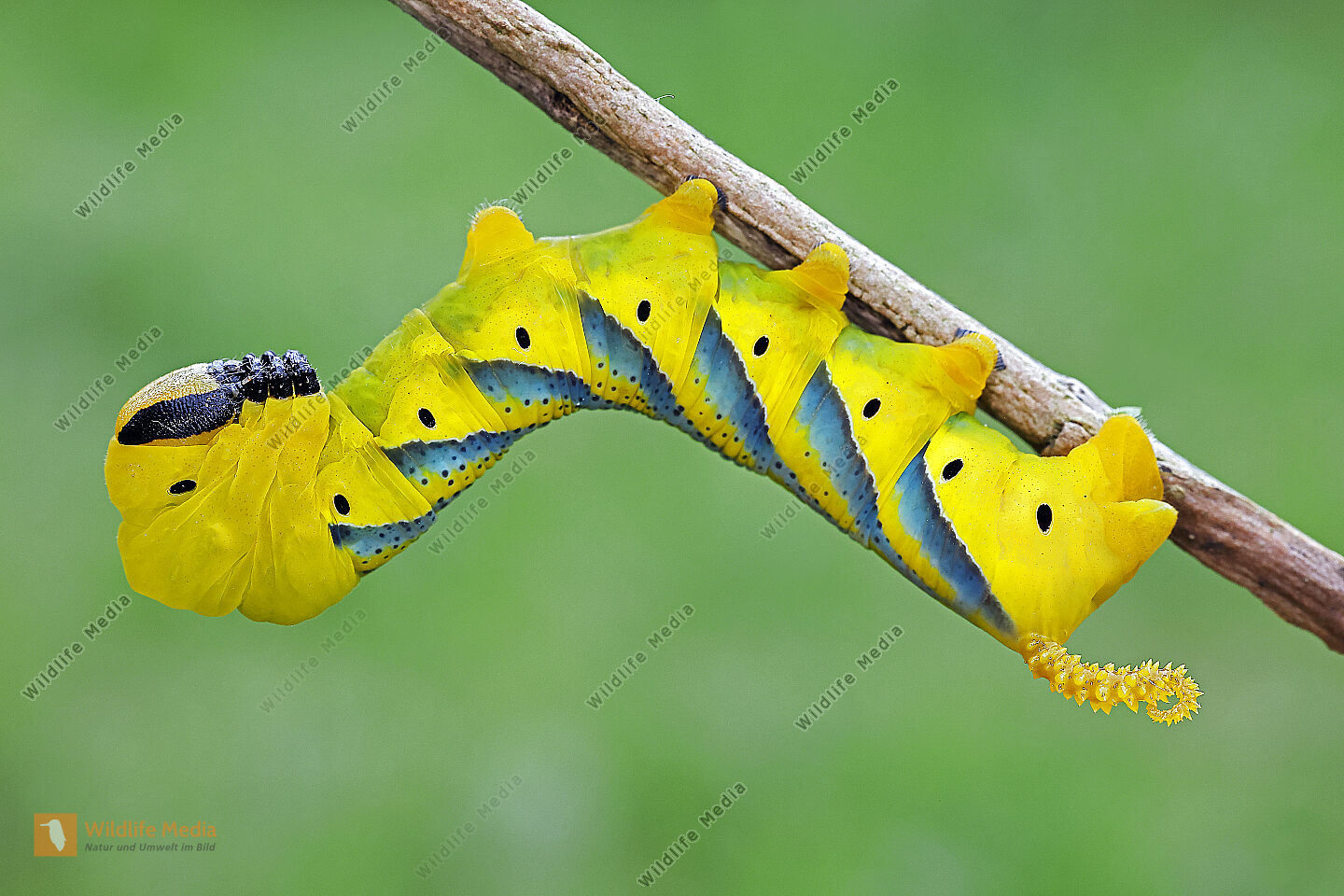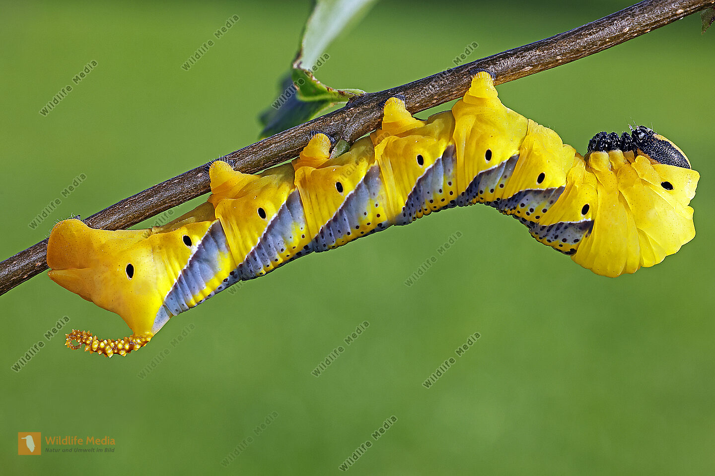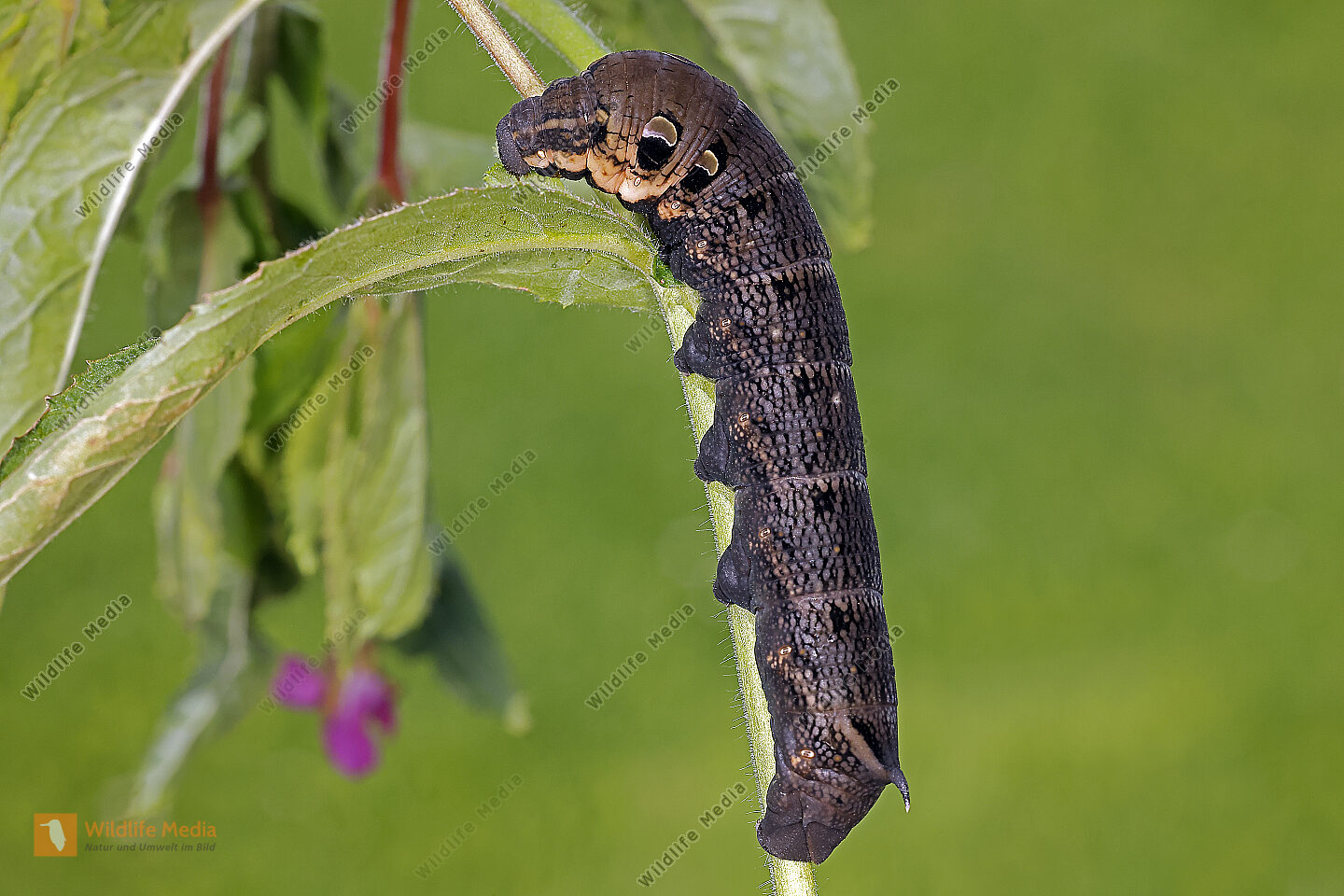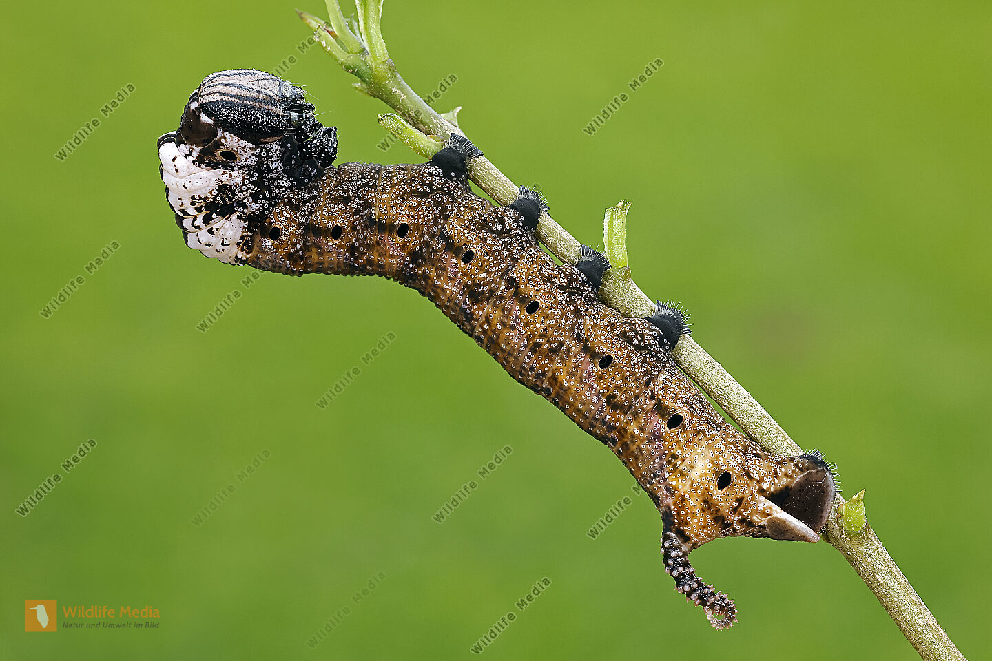 Mittlerer Weinschwärmer halberwachsene Raupe