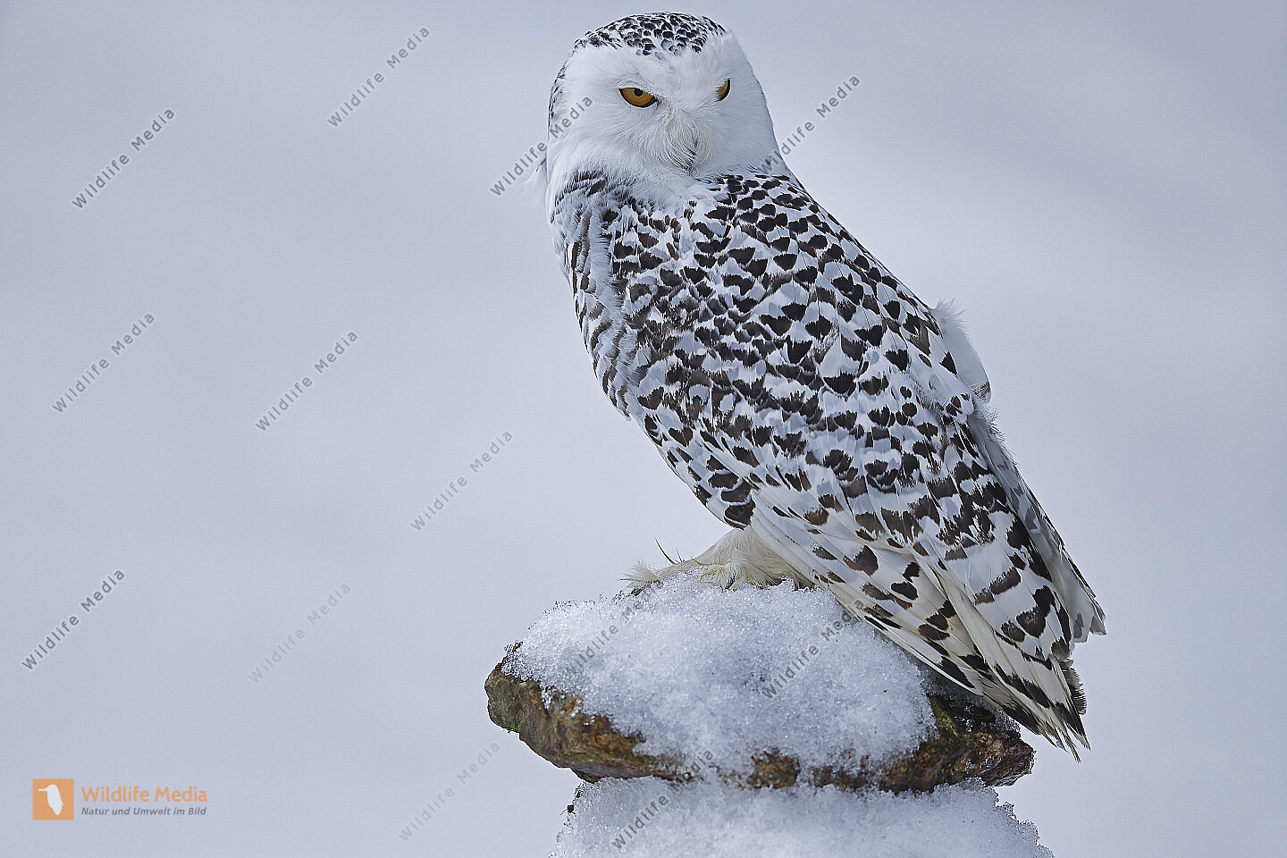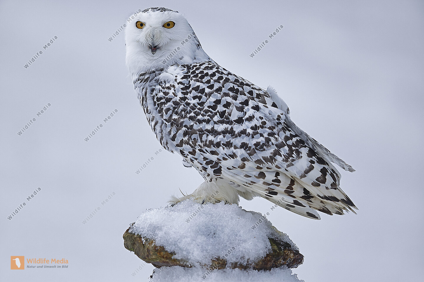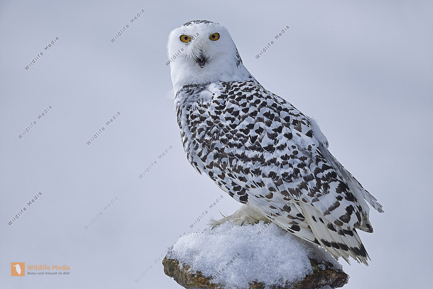 Habichtskauz Weibchen mit Junge in Naturhöhle