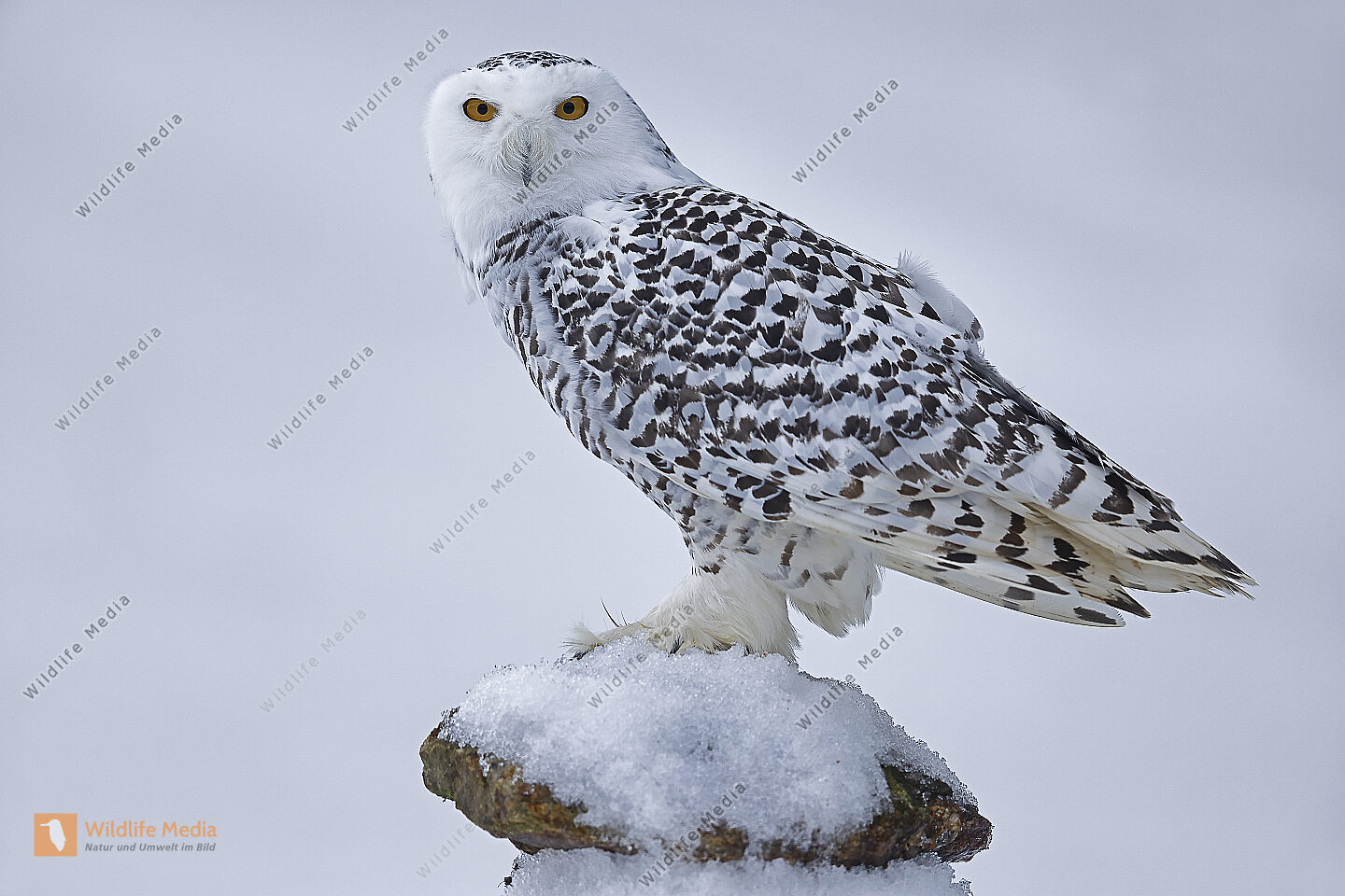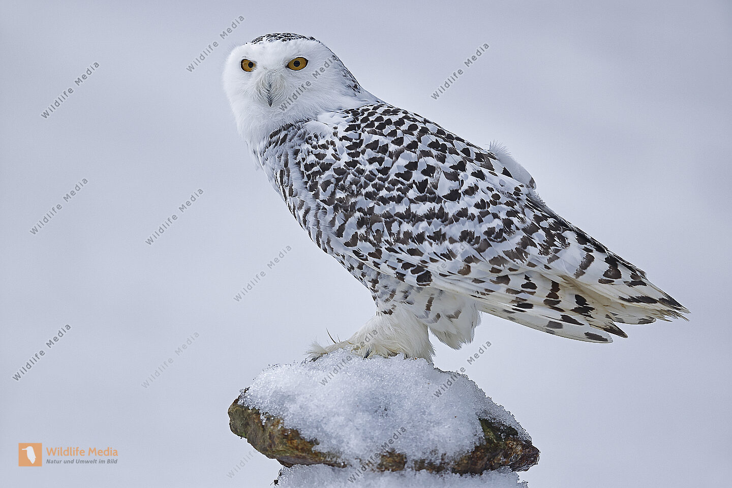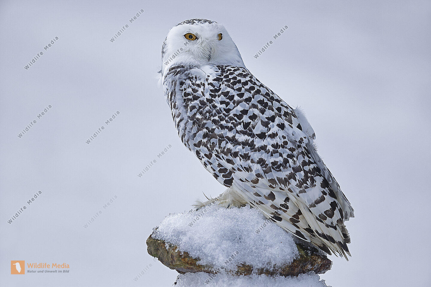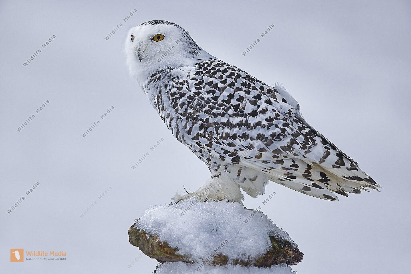 Habichtskauz Weibchen mit Junge in Naturhöhle
