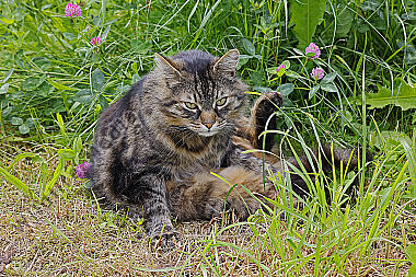 Hauskatze im Gras