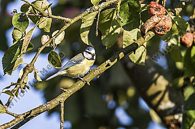 Eine Blaumeise sitzt auf einem Ast