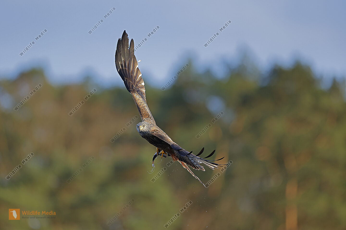 Rotmilan Milvus milvus auf einem Baumstumpf