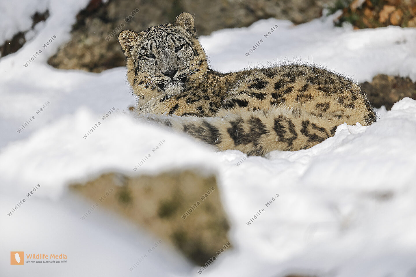 Schneeleopard im Schnee