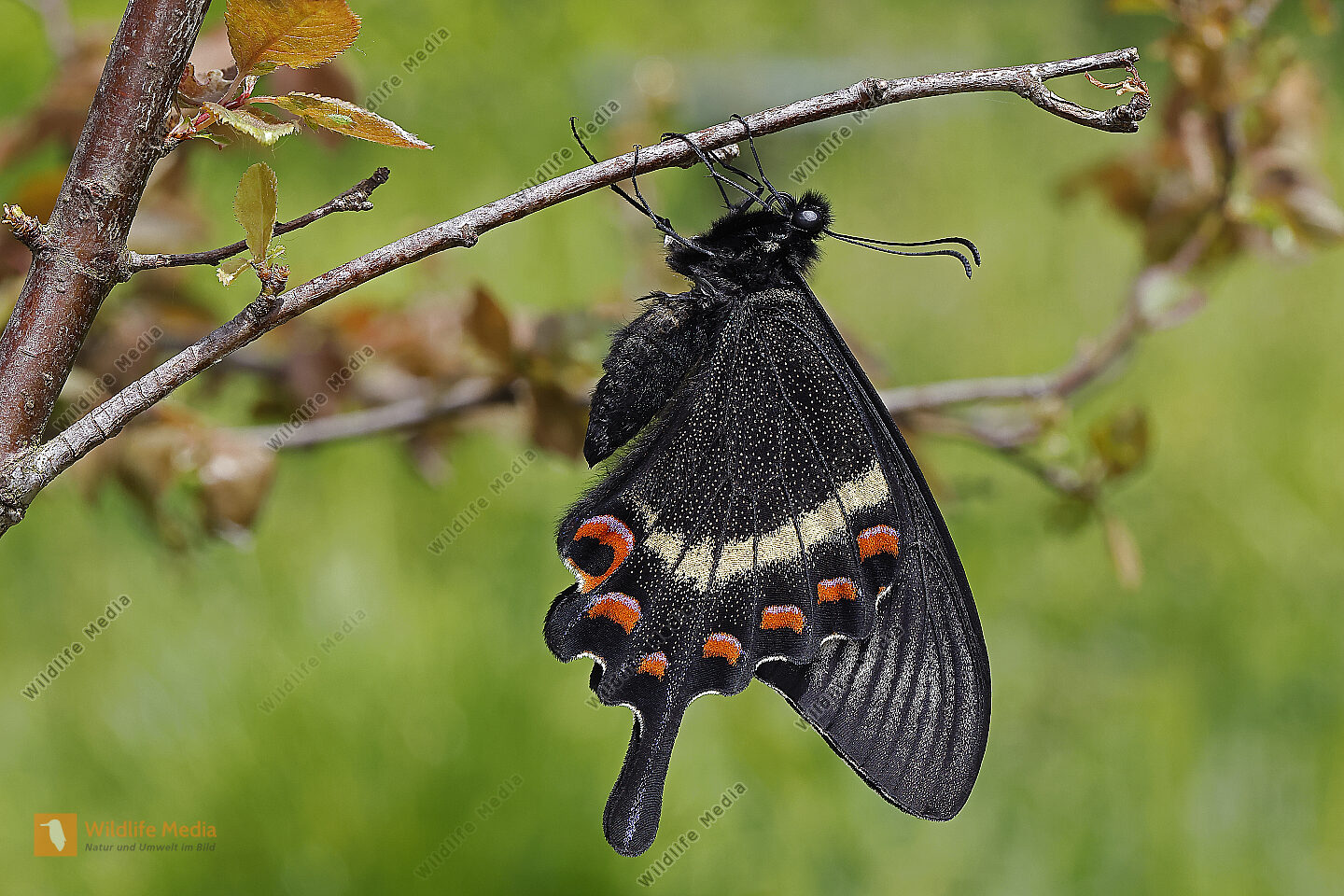 Ein Schwalbenschwanz unterwegs auf einer Wiese