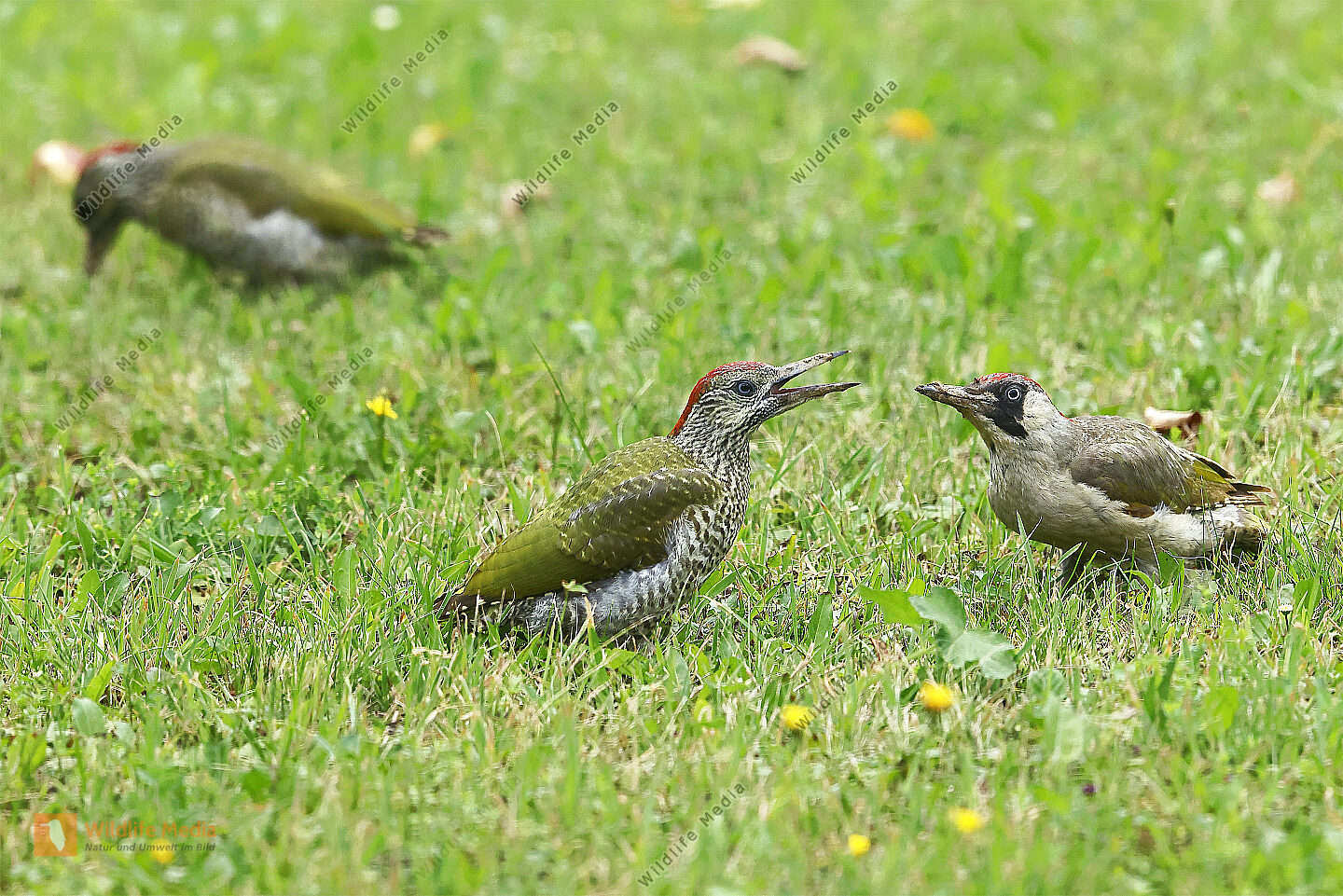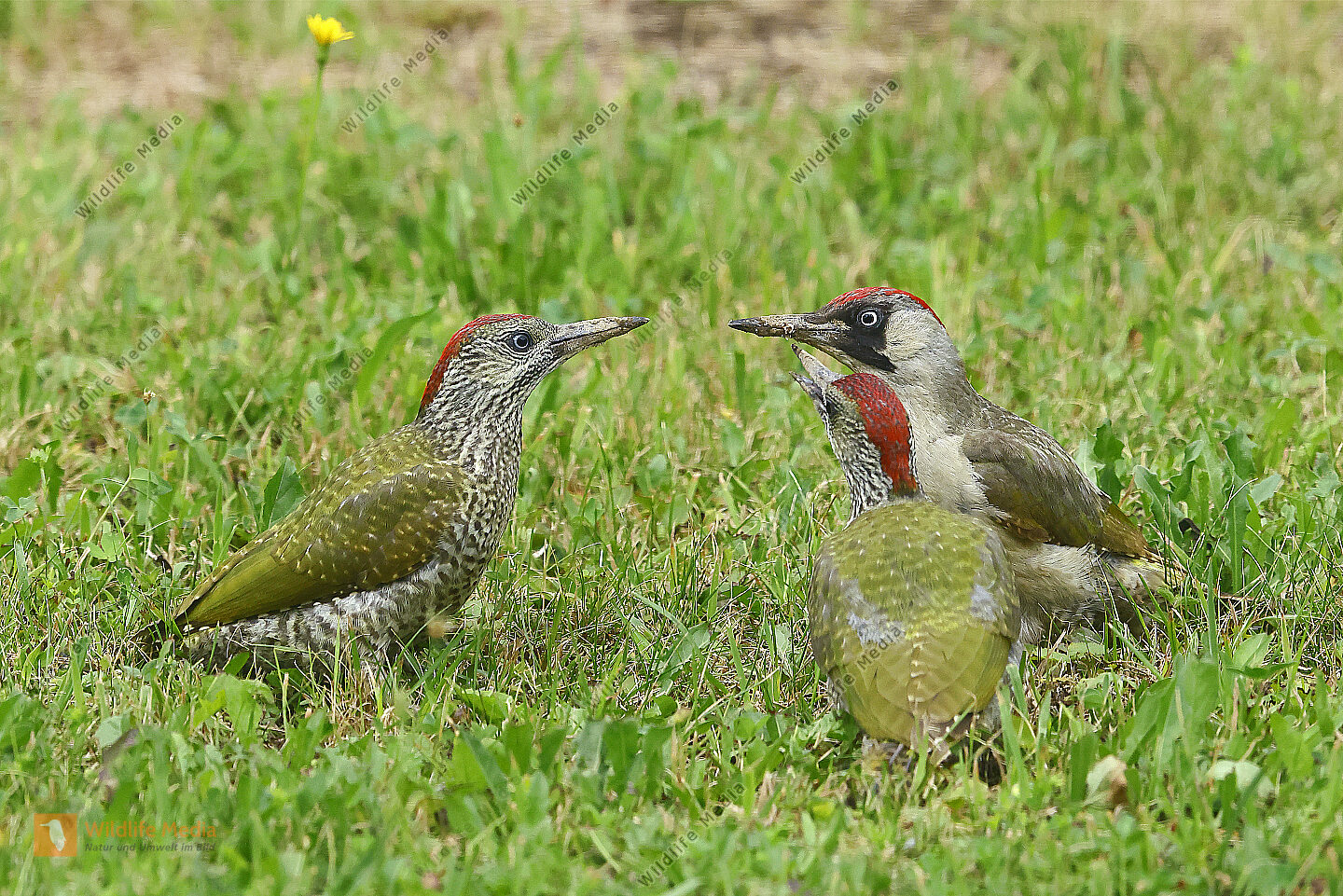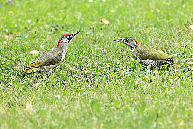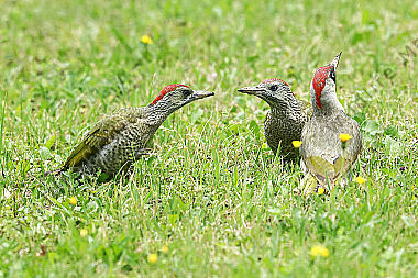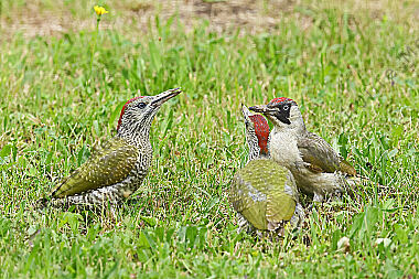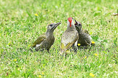 Grünspecht Weibchen mit Jungvogel