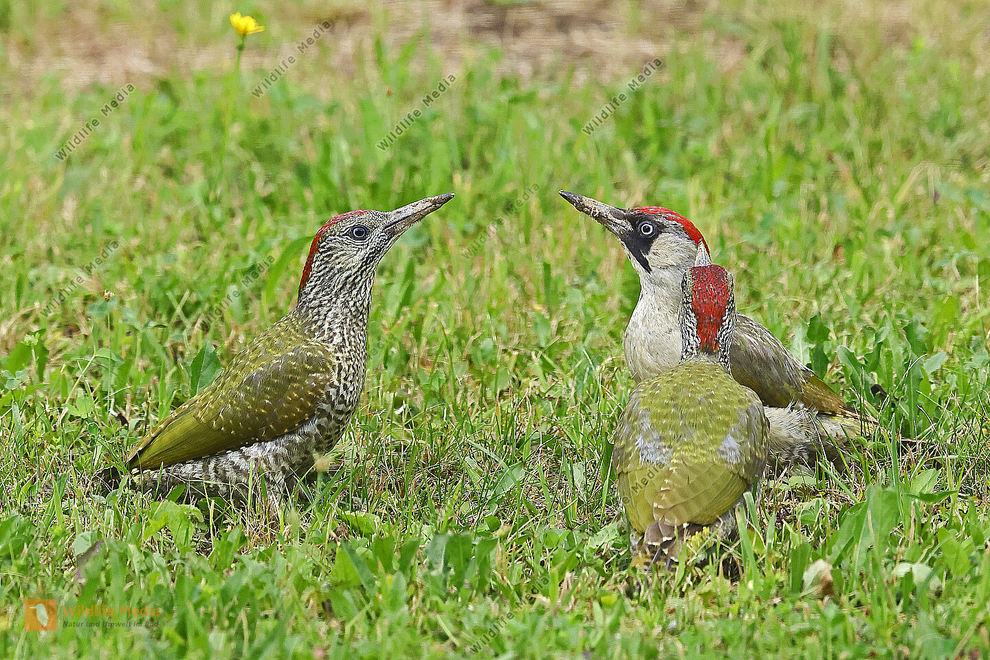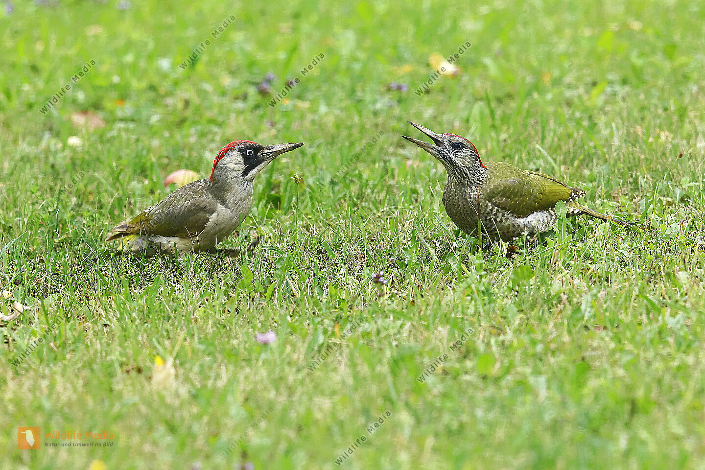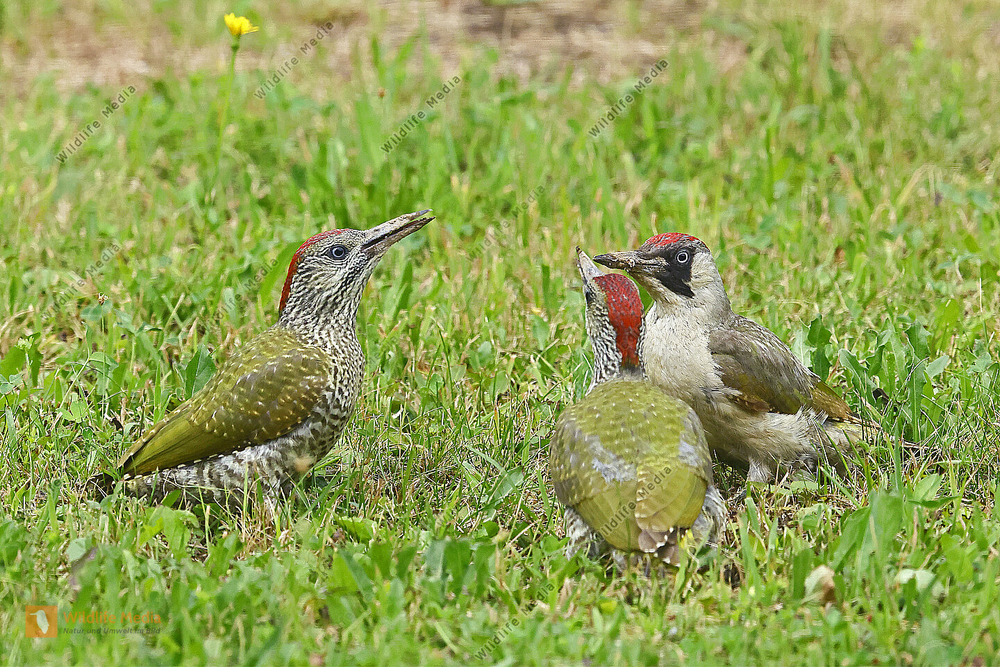Grünspecht Weibchen mit Jungvogel