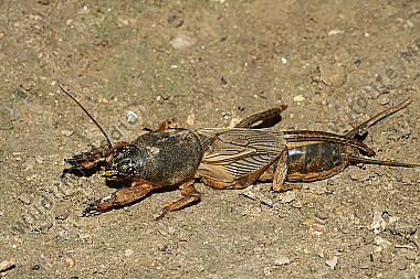 Eine Bachstelze am Bachufer auf Nahrungssuche