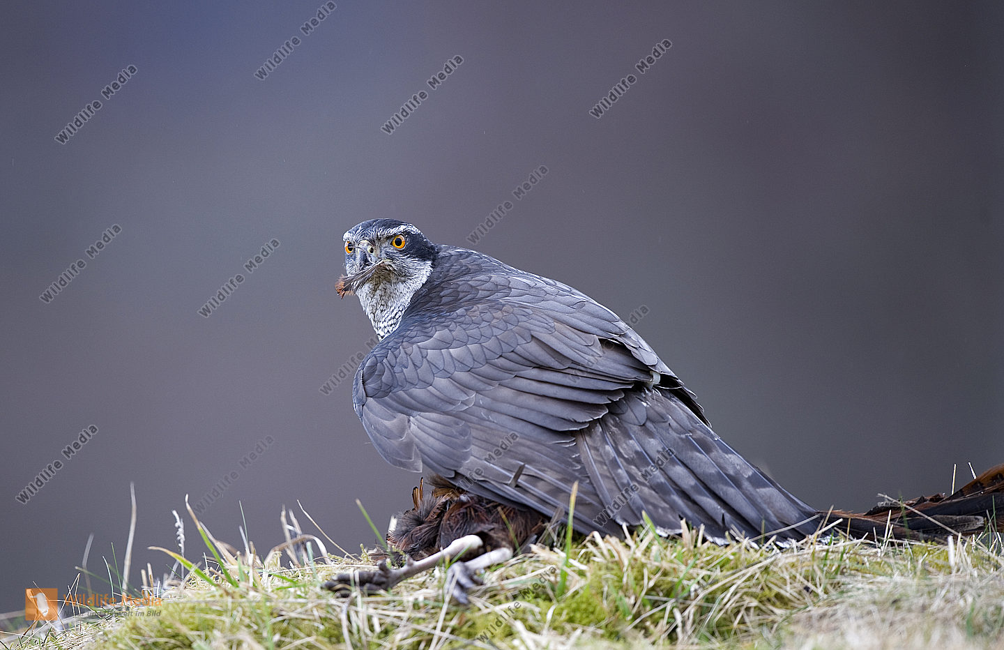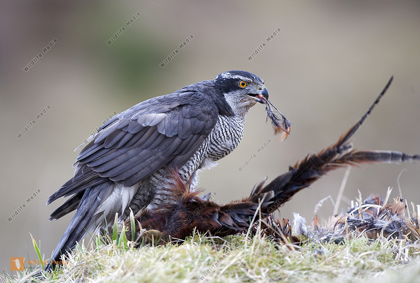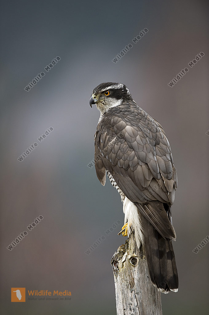 | Beschreibung: | Habicht (Accipiter gentilis), Männchen, auf einem Baumstumpf | ||