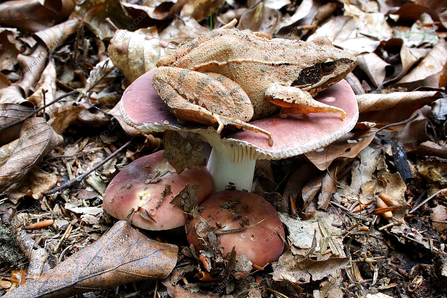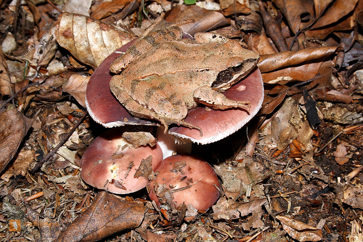 Stichwörter: Springfrosch , Frosch , Rana dalmatina , Speisepilz , Speisetäubling , Speisepilz , Täubling , Russula vesca