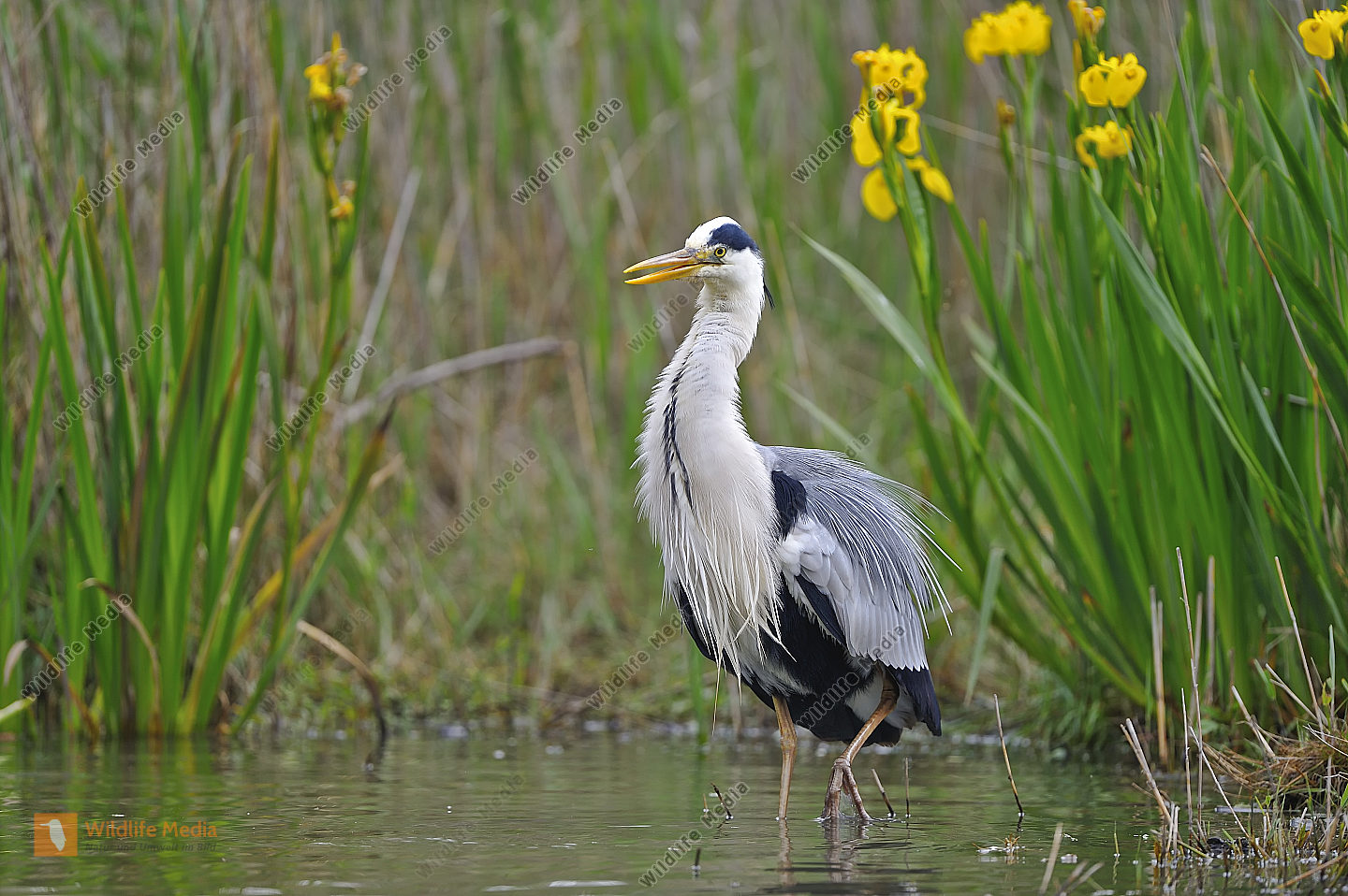 Zoom Graureiher auf Nahrungssuche