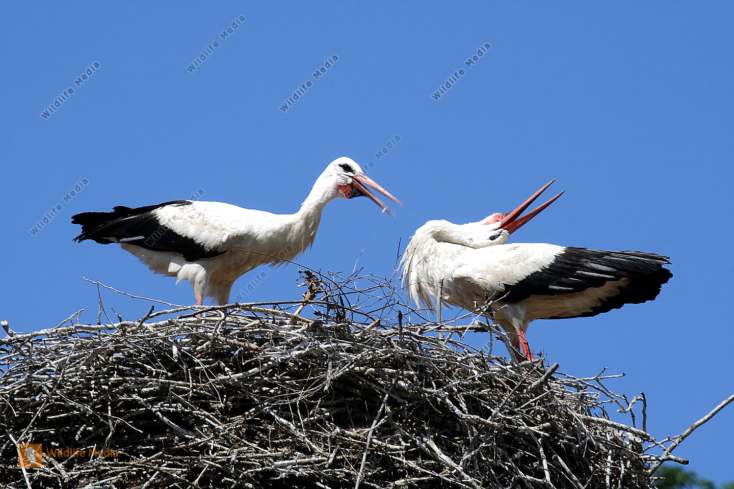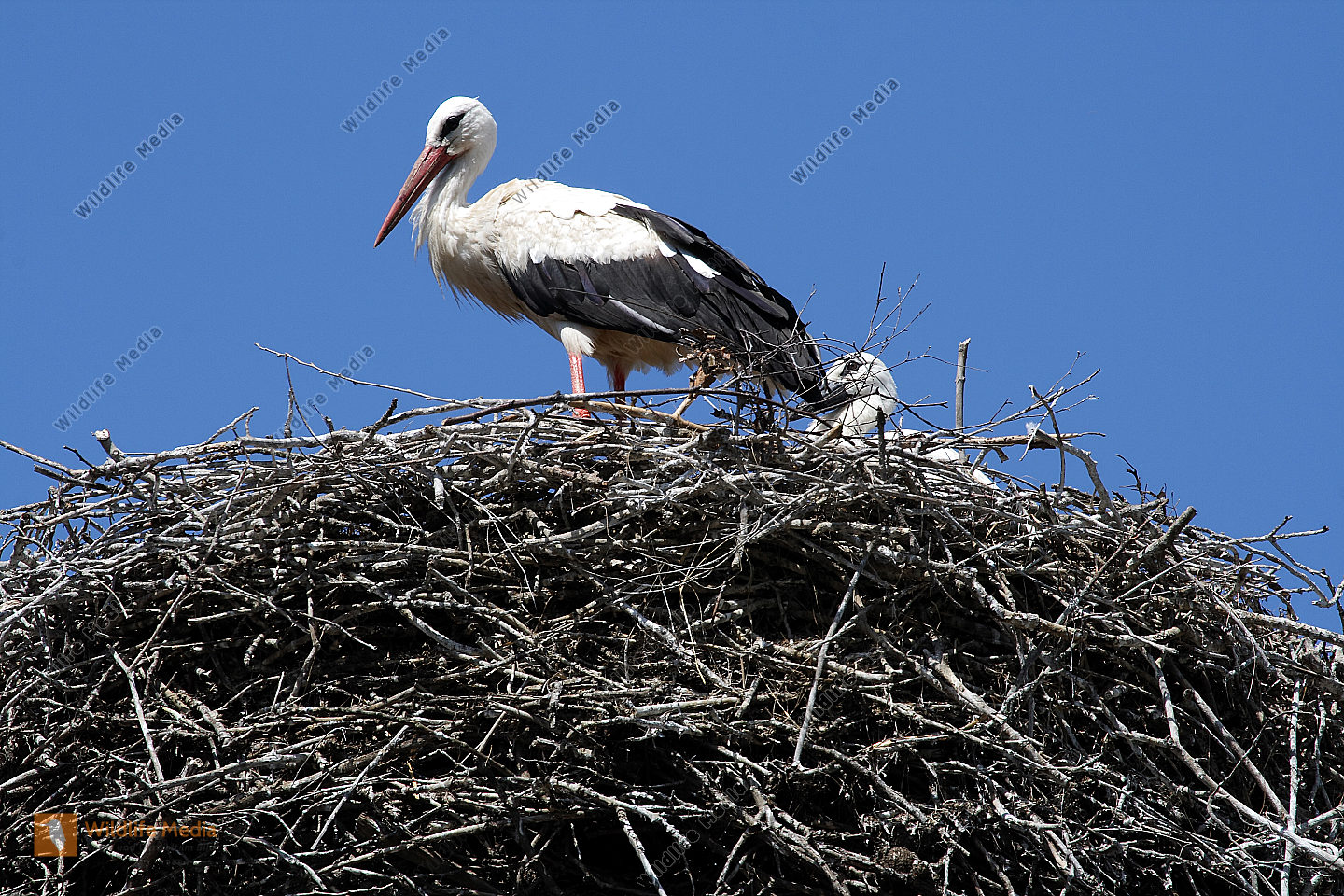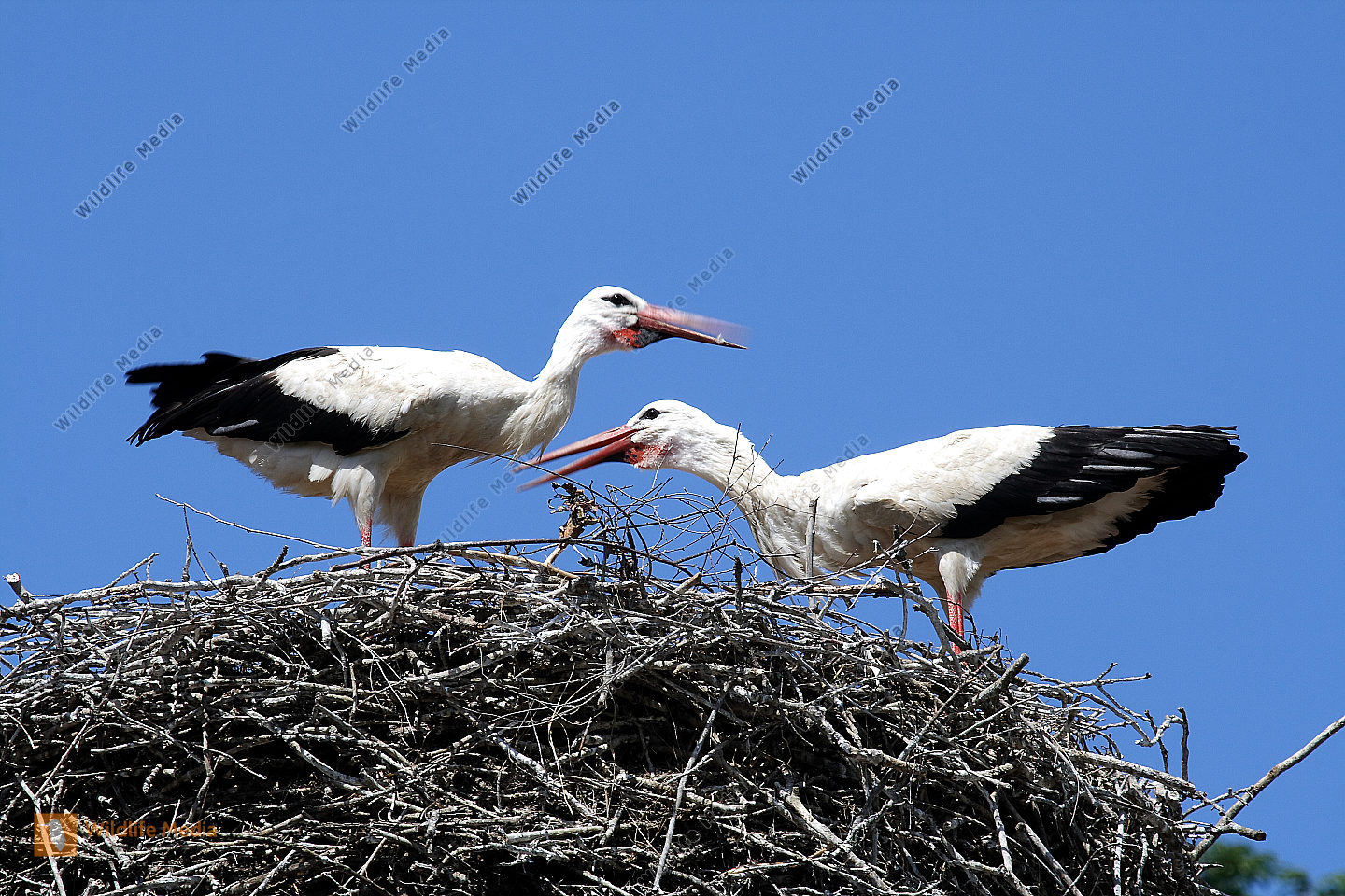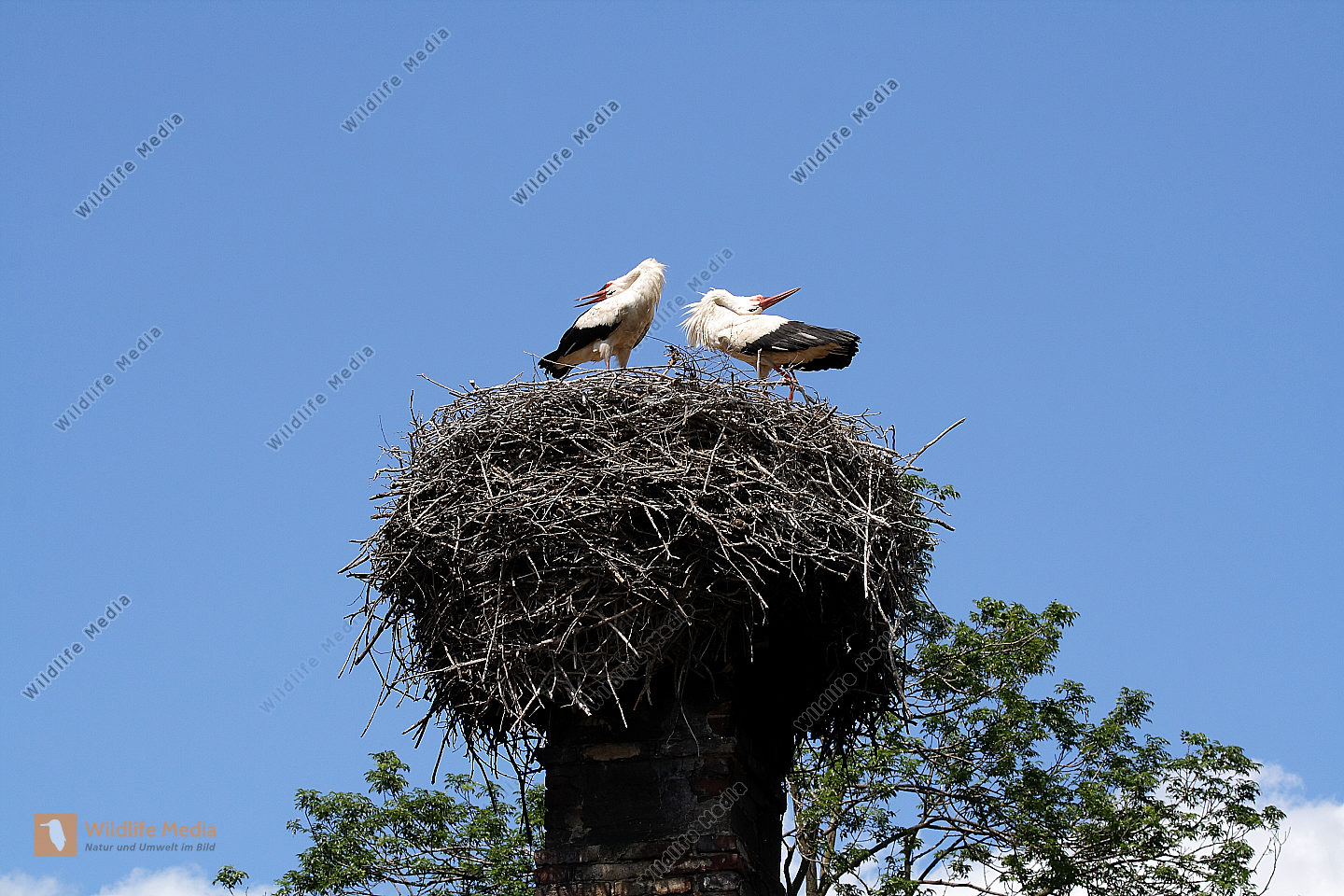 Zoom Weißstörche beim Nestbau und der Nestpflege