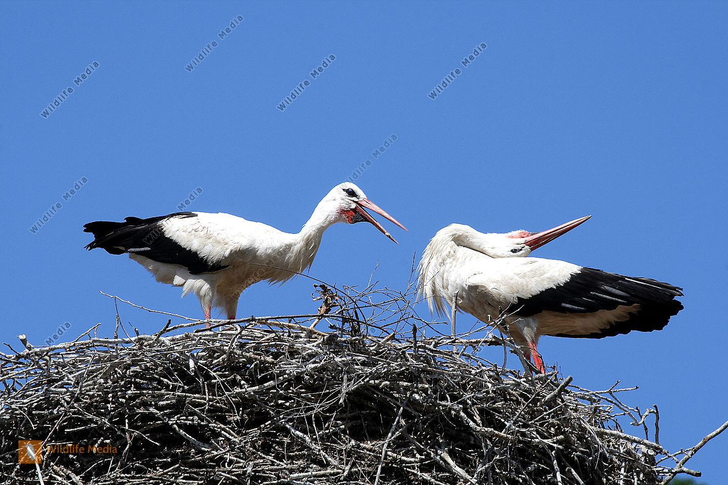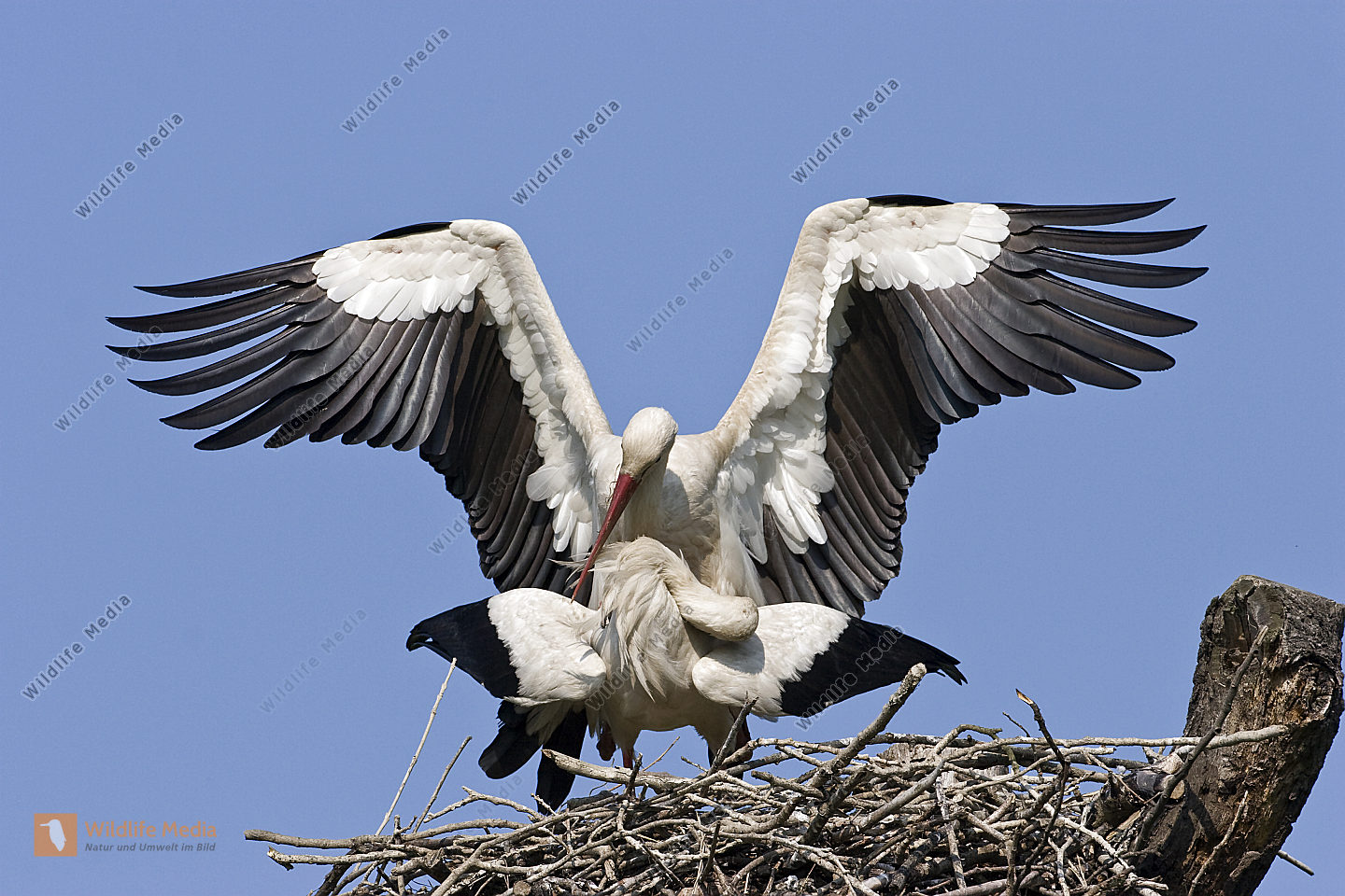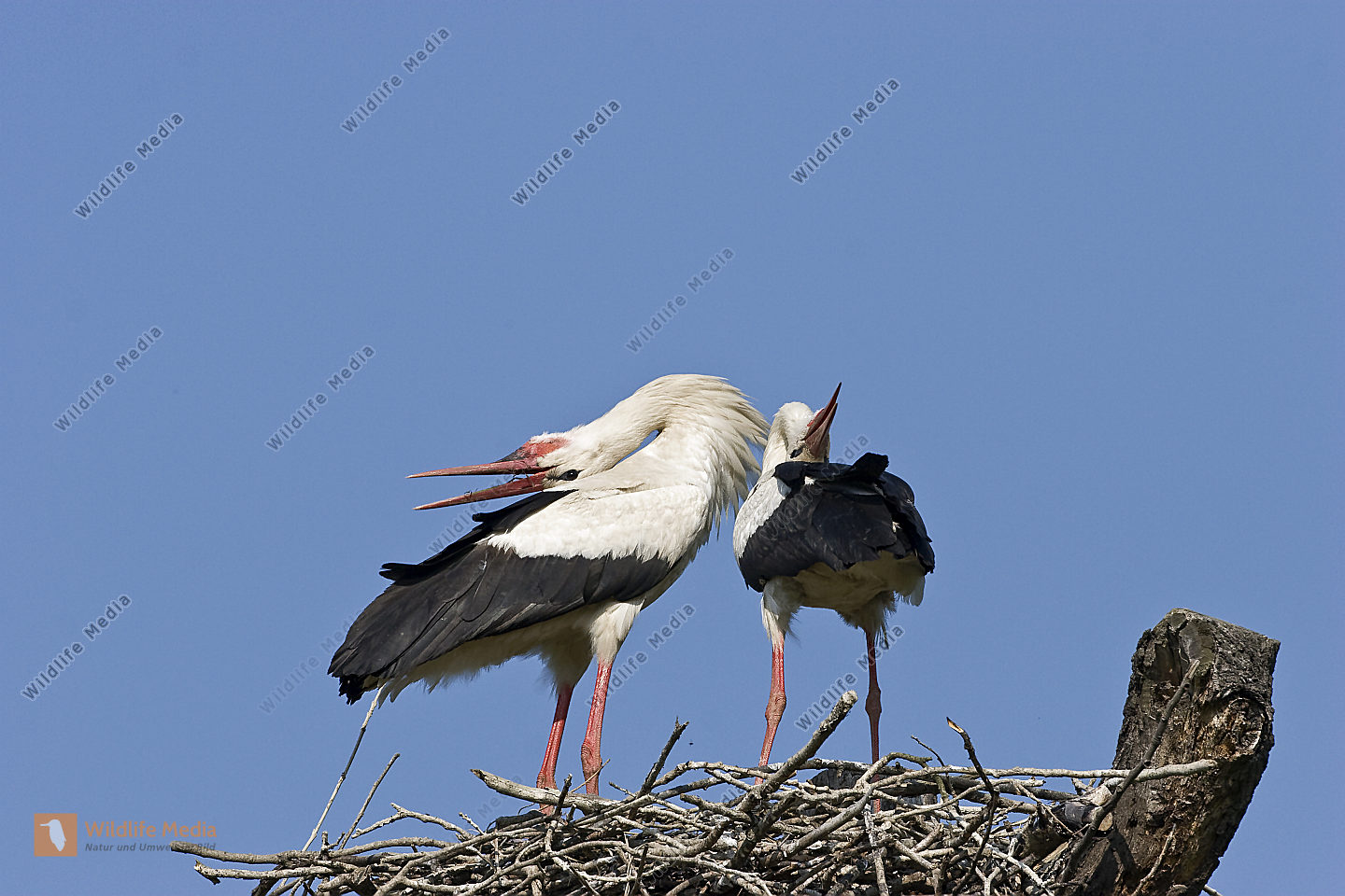 Weißstörche beim Nestbau und der Nestpflege