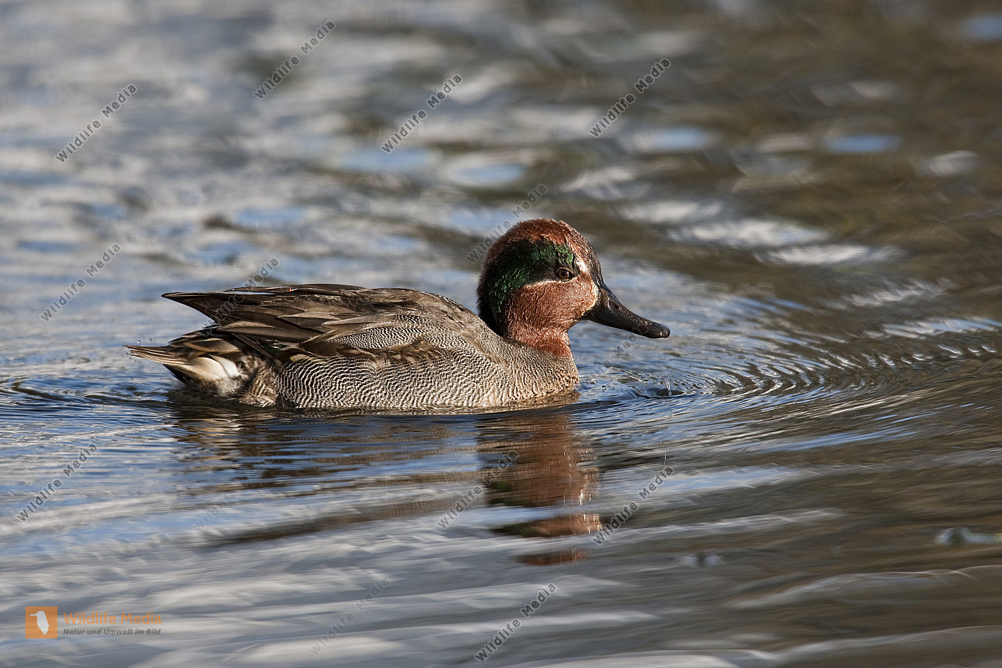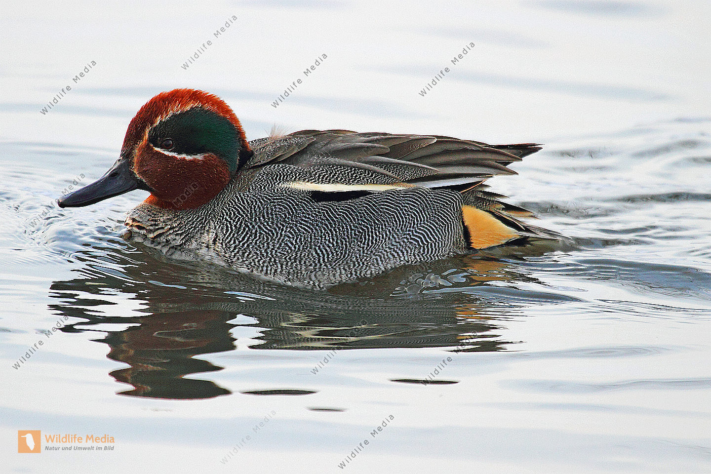 | Beschreibung: | Eine männliche (links) und eine weibliche Krickente (rechts) treiben auf dem Ökosee im saarländischen Dillingen | ||