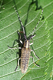 | Stichwörter: | Scheckhorn-Distelbock , Bockkäfer , Cerambycidae , Nesselbock , Linienhalsiger Halmbock , Golden-bloomed grey longhorn beetle , Agapanthia villosoviridescens | ||