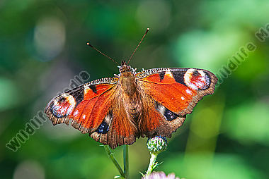 Wildkatze Felis silvestris silvestris auf einem Holzhaufen Hochformat