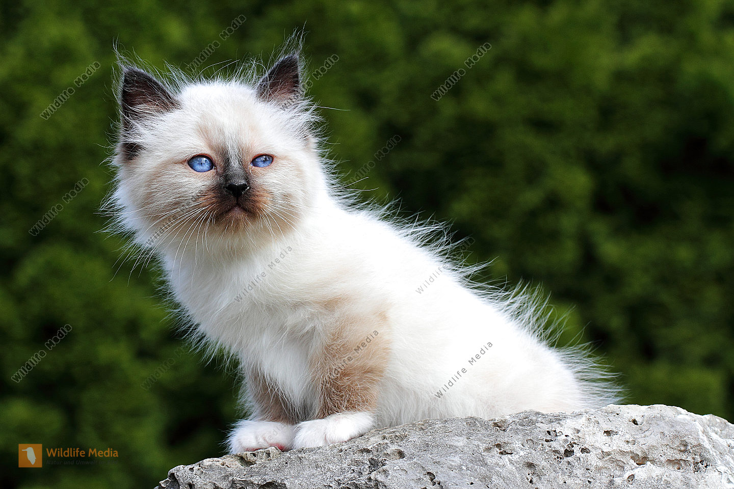 Graue gehörnte Heidschnucke junger Bock Ovis aries im Stall