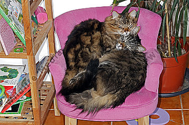 Skuddenmutterschaf mit Lämmern Ovis aries auf der Weide