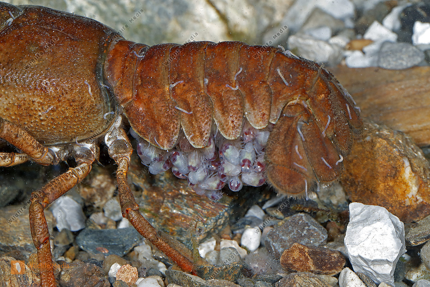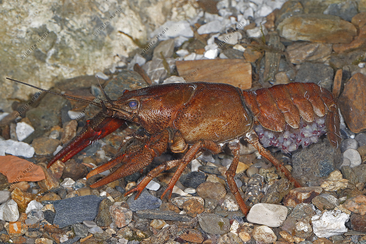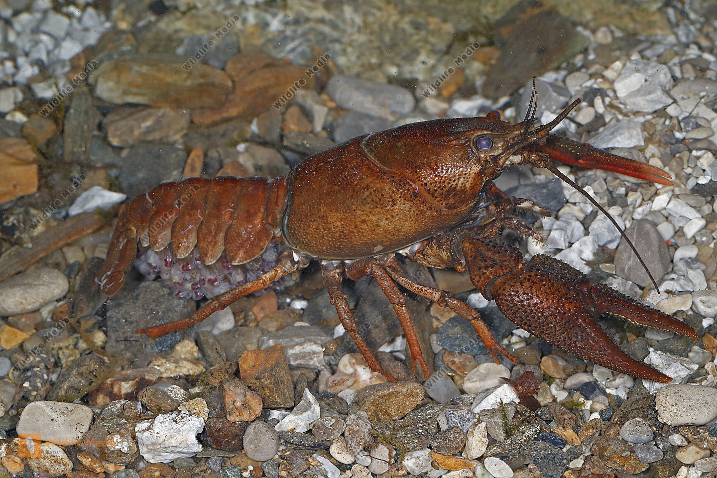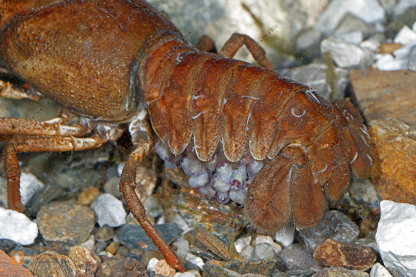 Europäischer Flußkrebs Weibchen mit Jungen