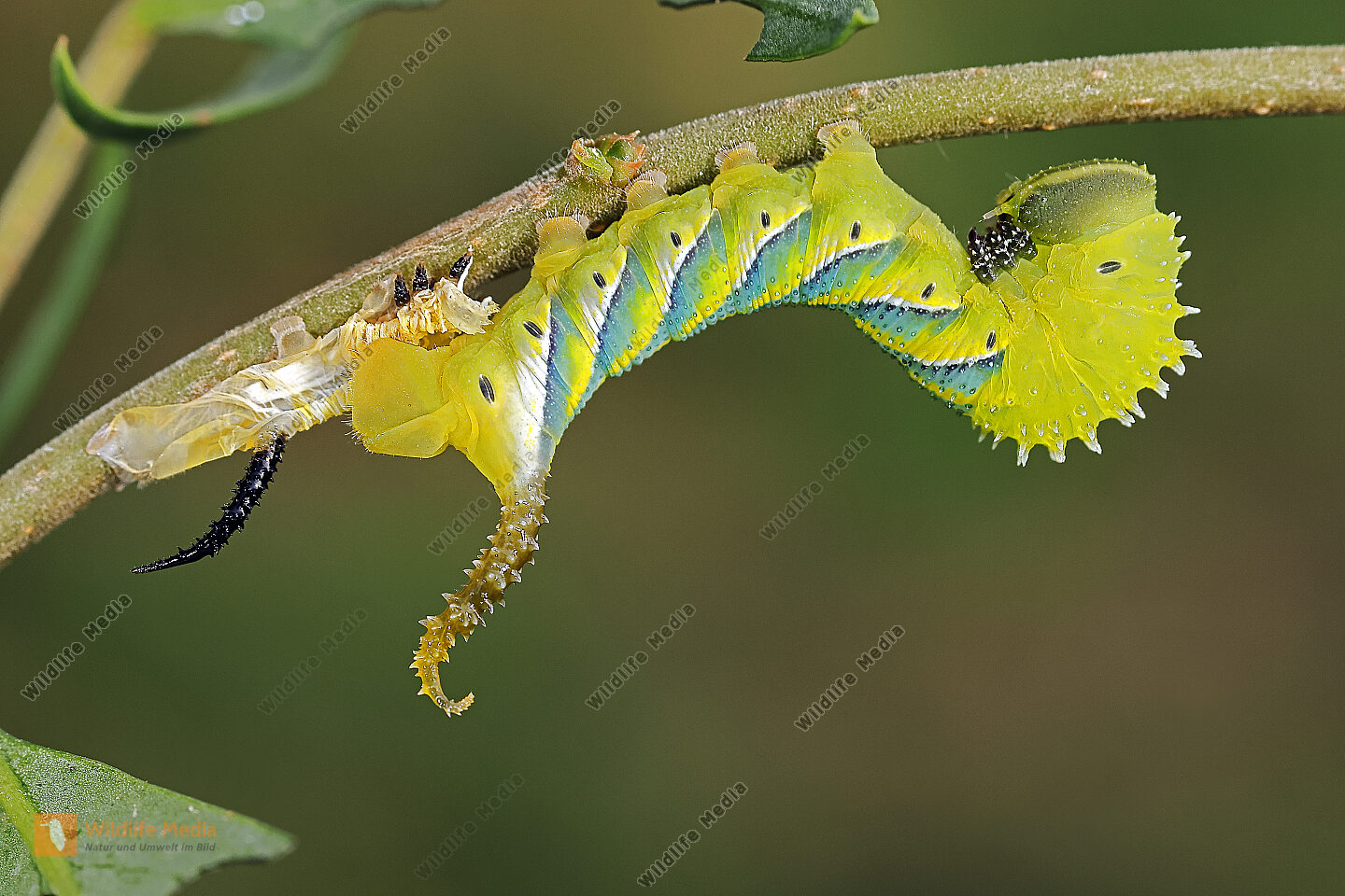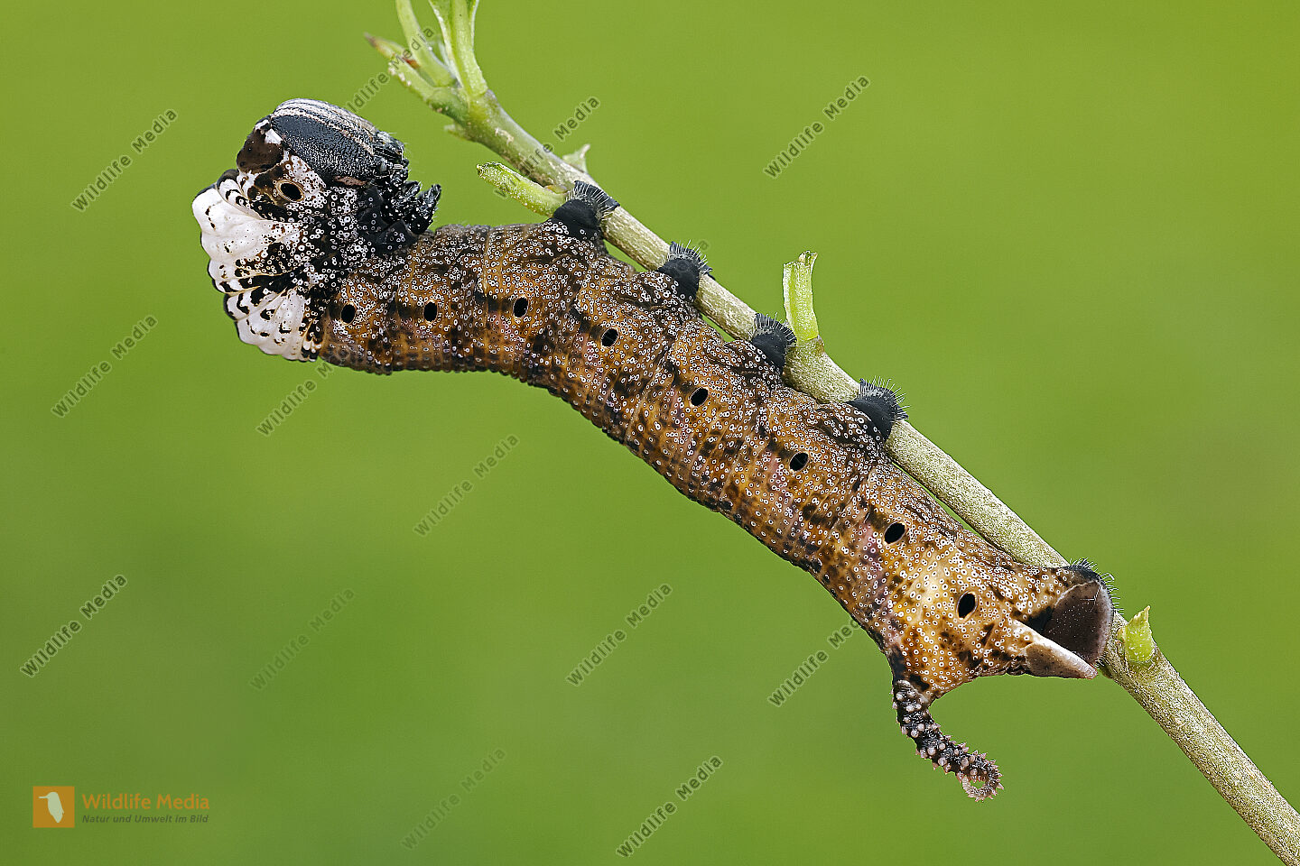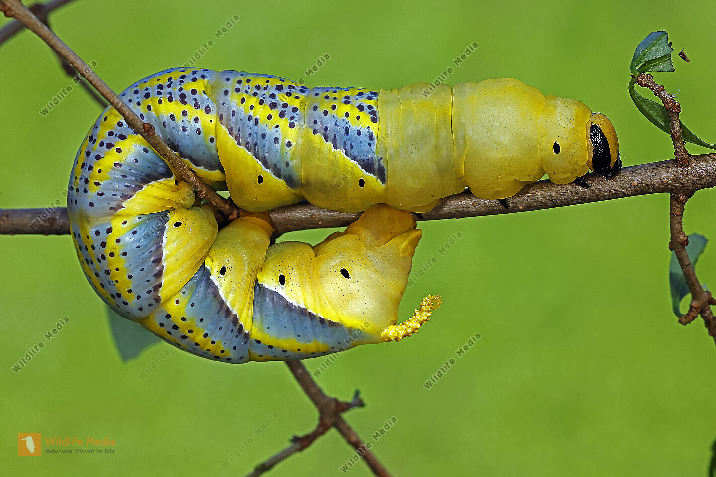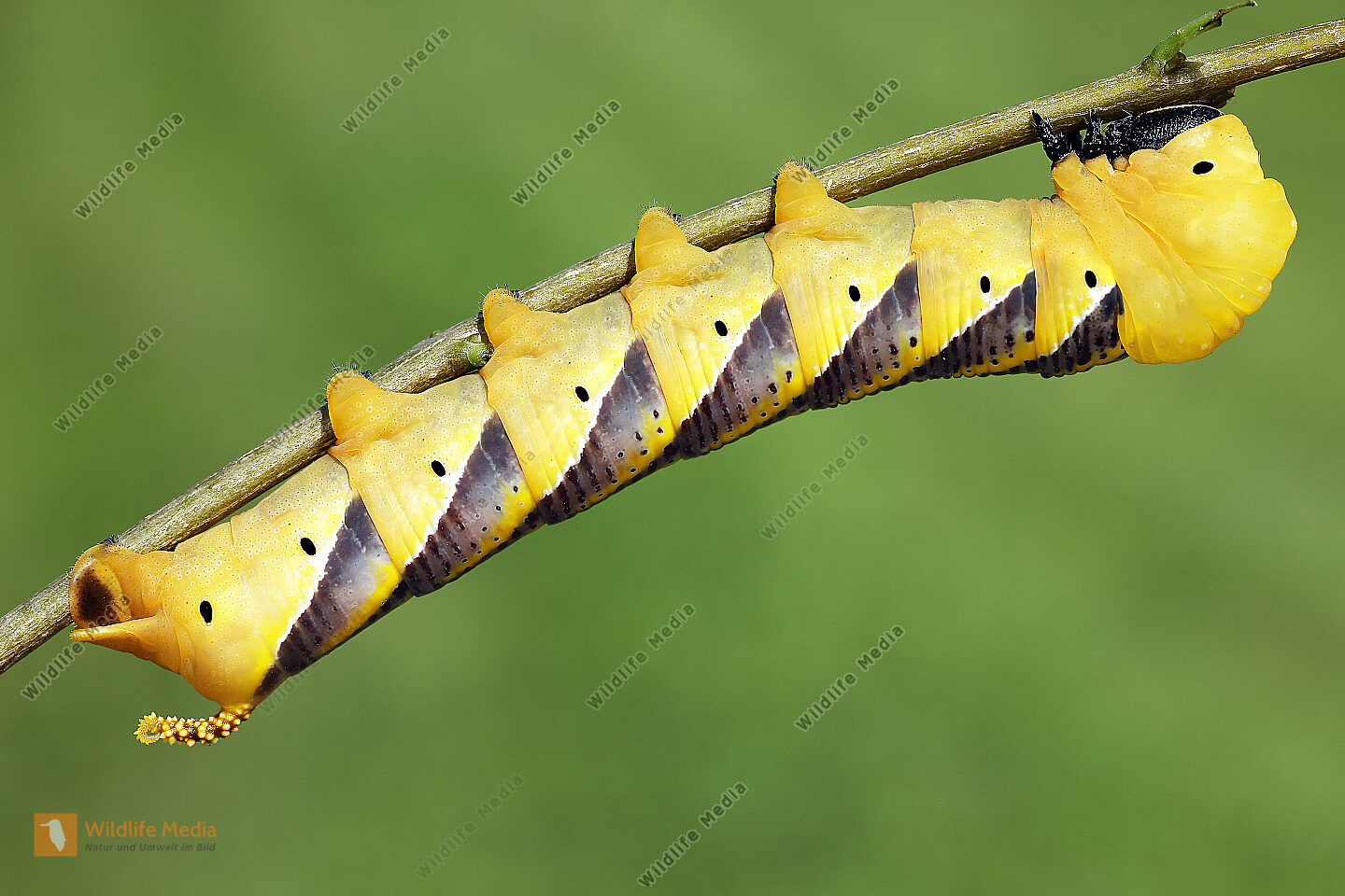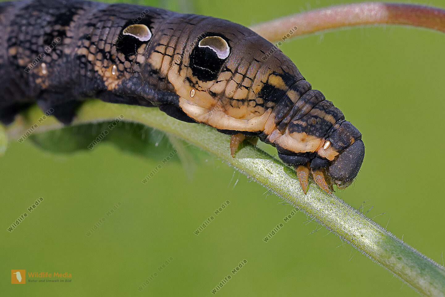 Mittlerer Weinschwärmer halberwachsene Raupe