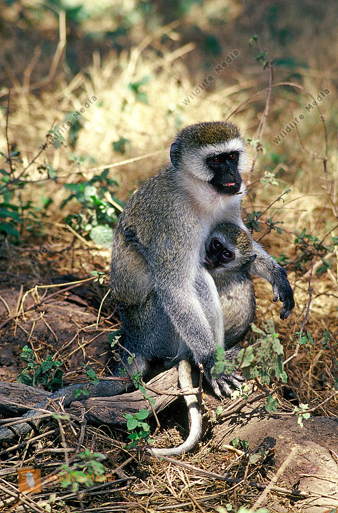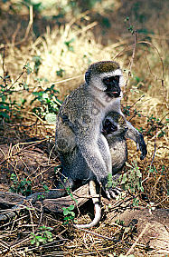 Grüne Meerkatze mit Jungtier