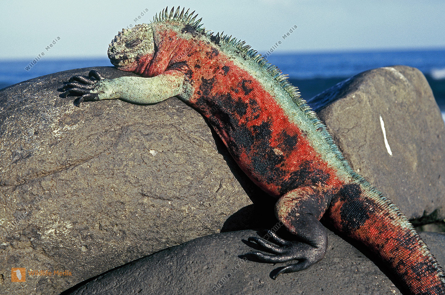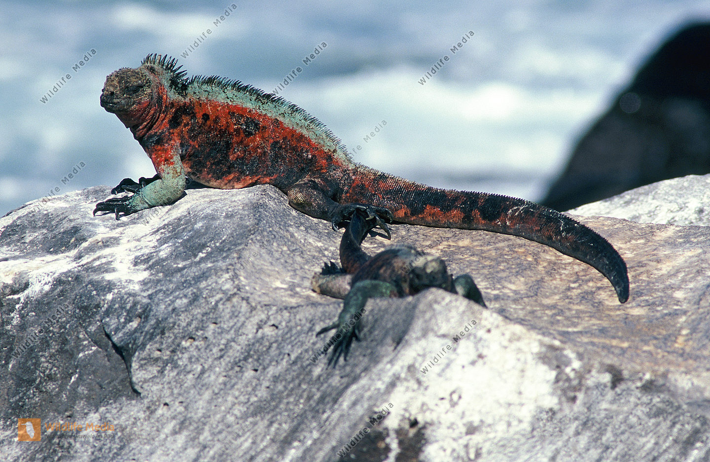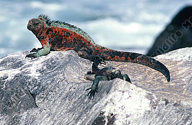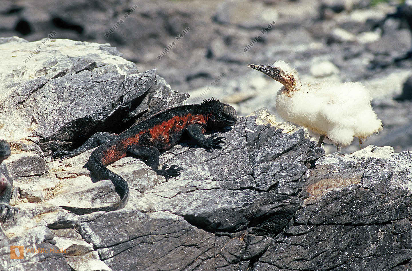 Junge Meerechse mit Jungen Maskentölpel