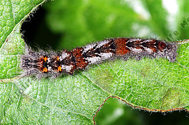 Blauschwarzer Eisvogel Raupe mit Brackwespenkokons