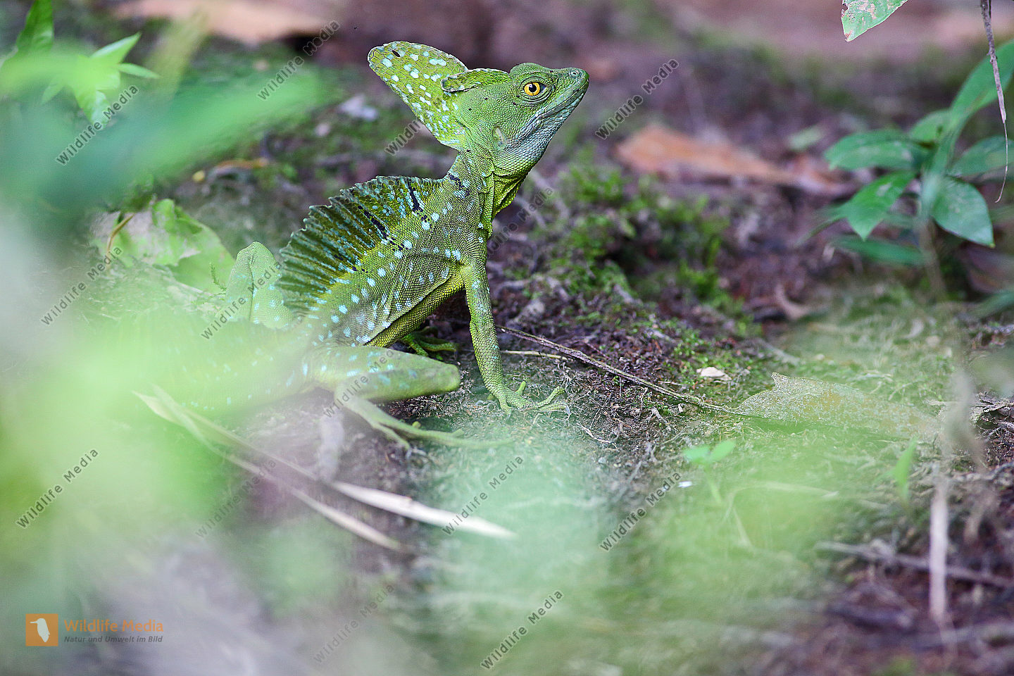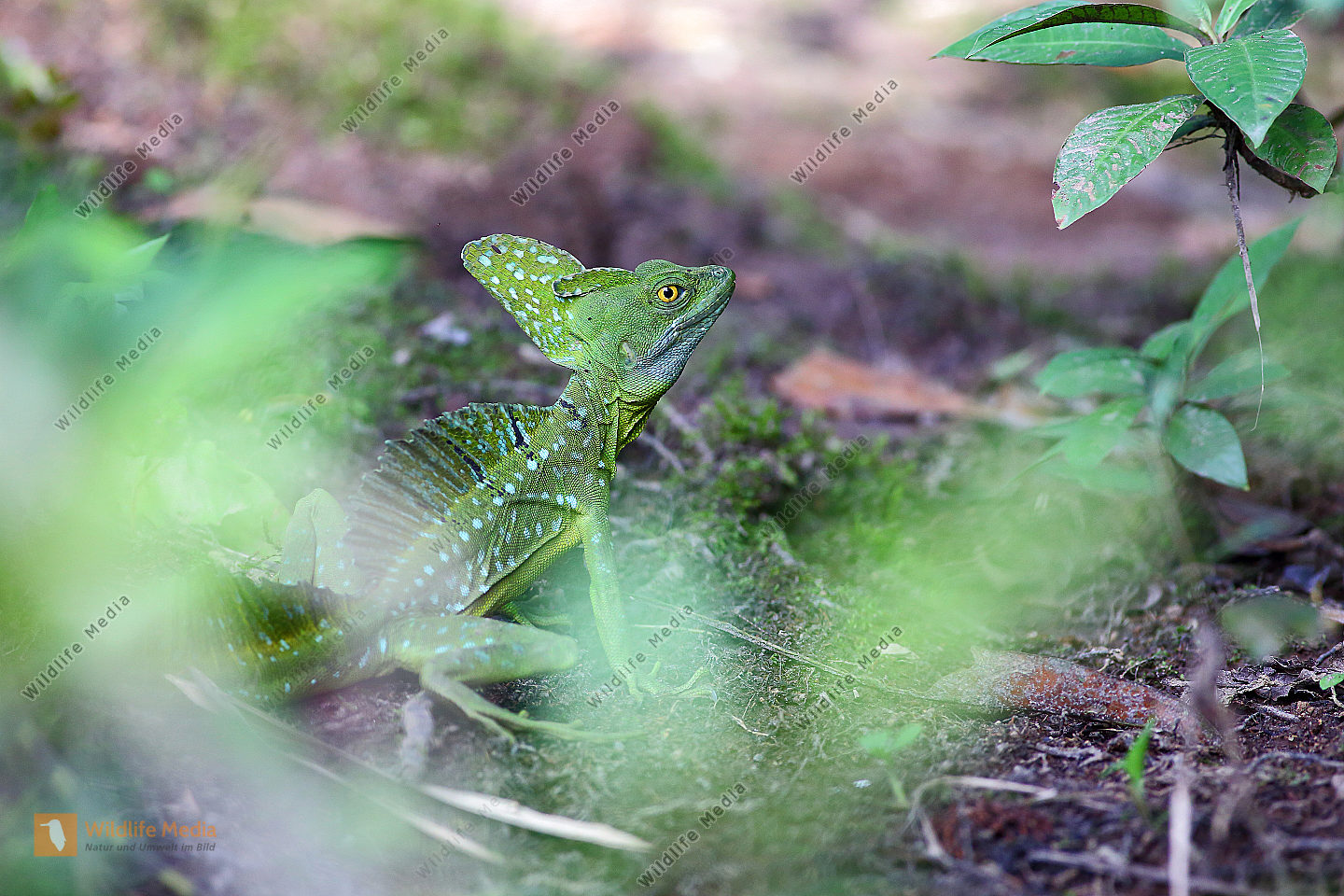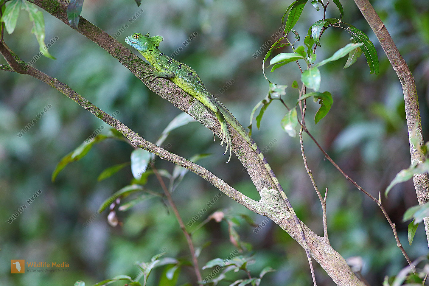 Stirnlappenbasilisk junges Männchen