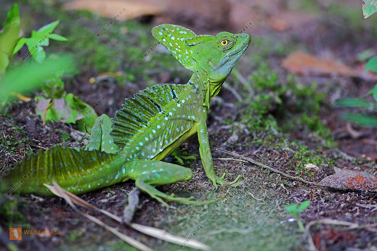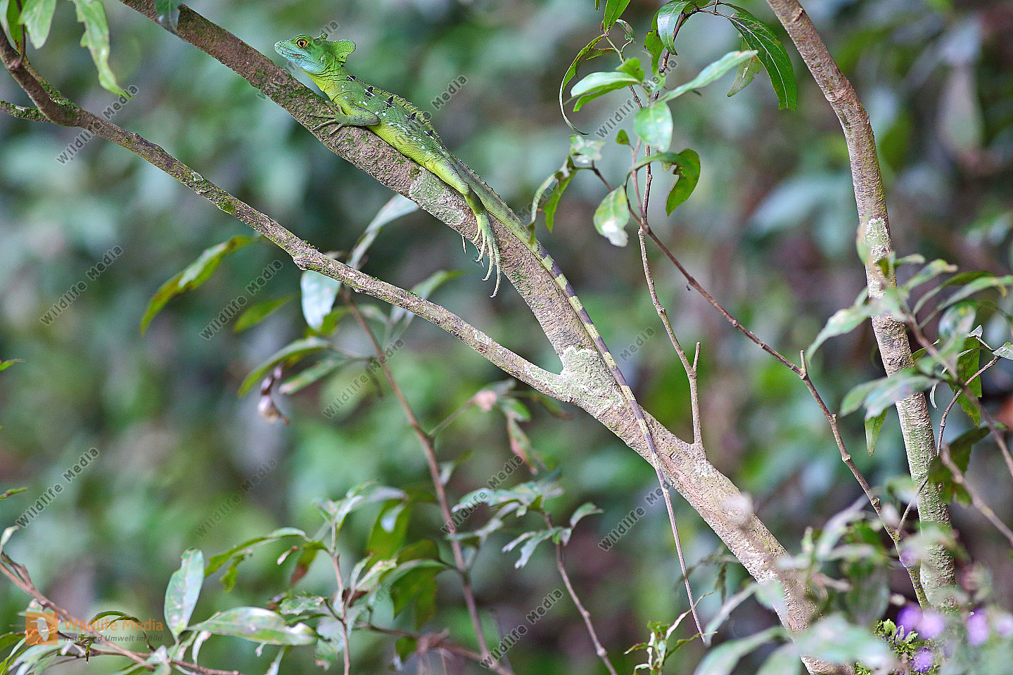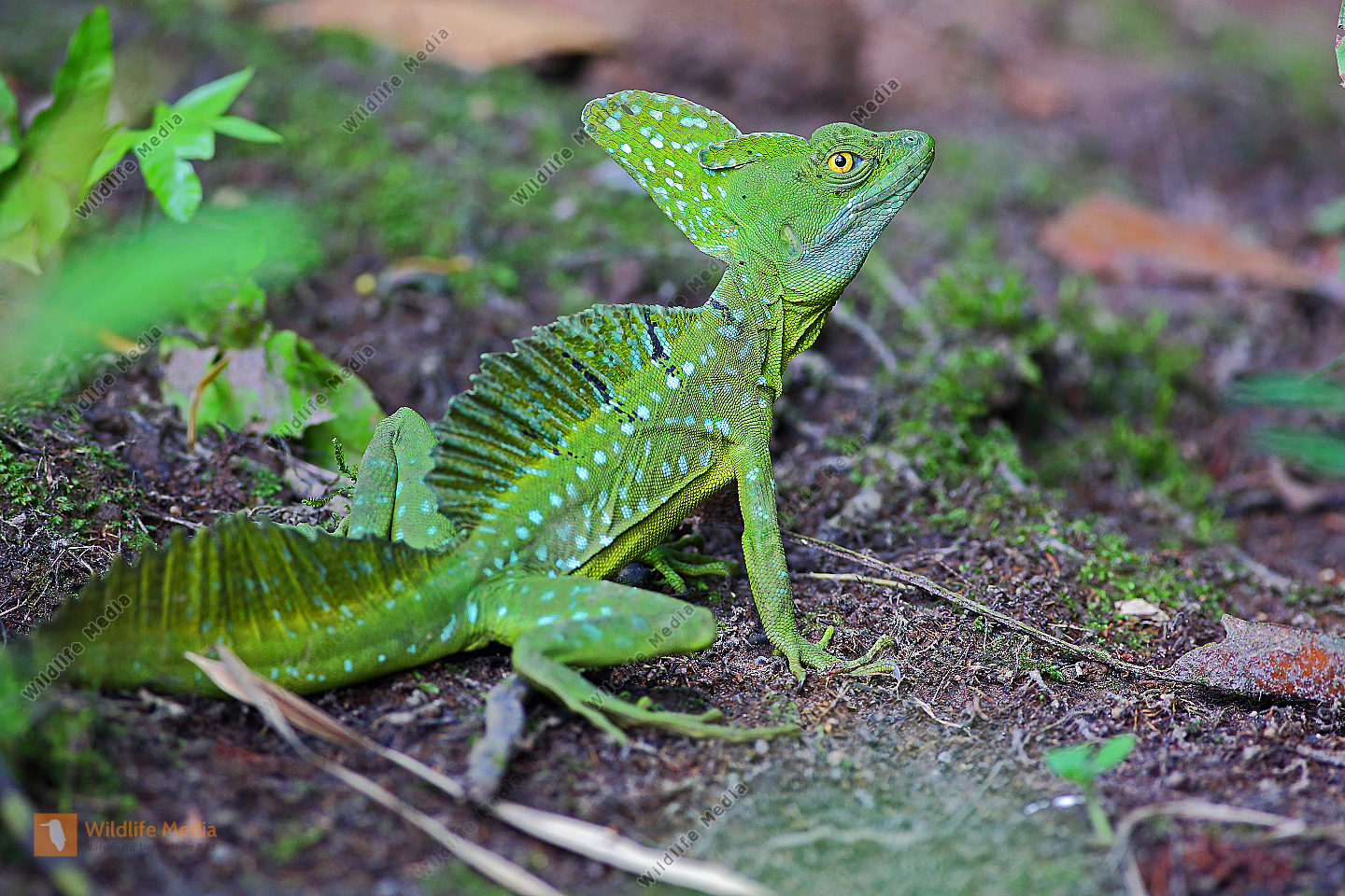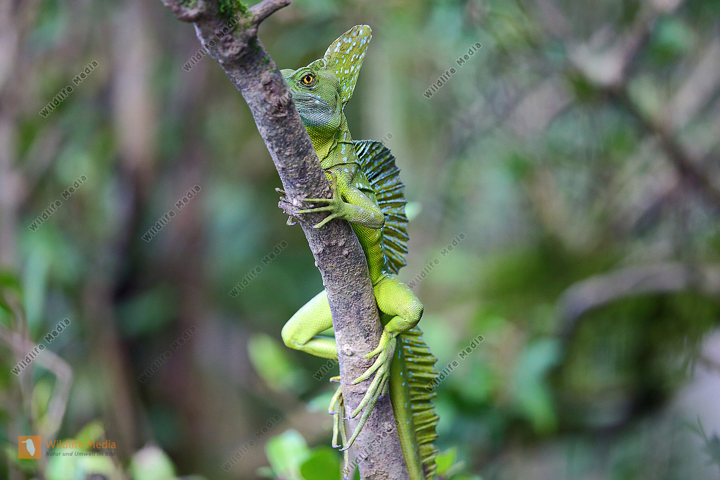 Stirnlappenbasilisk junges Männchen