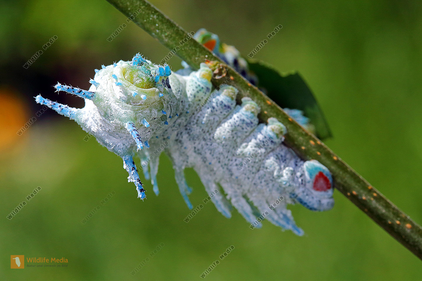 Edward's Atlasseidenspinner halberwachsene Raupe
