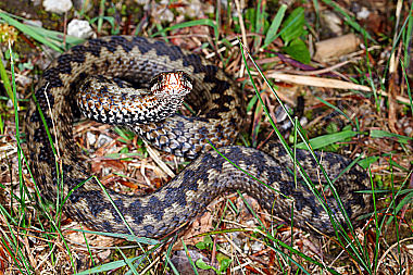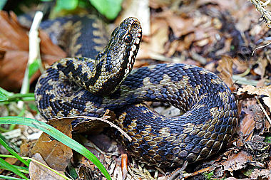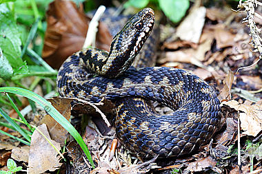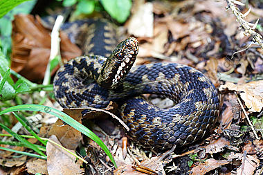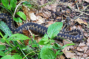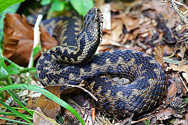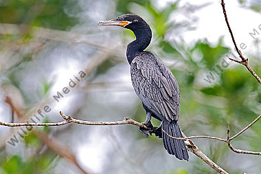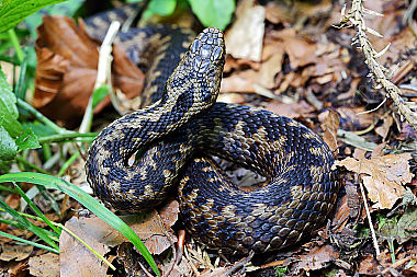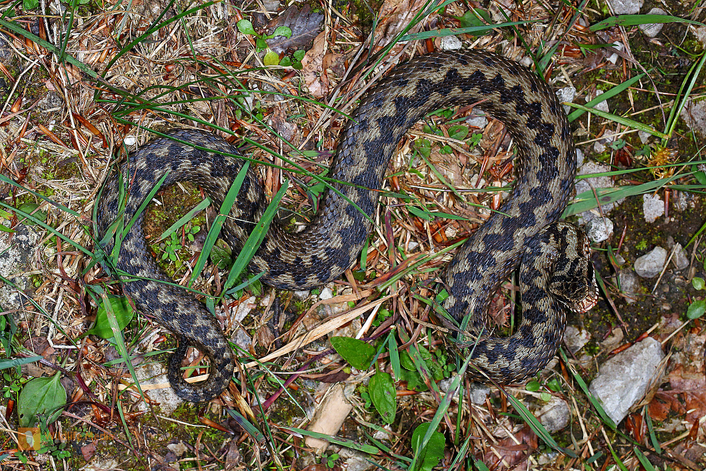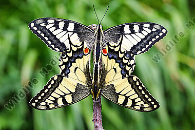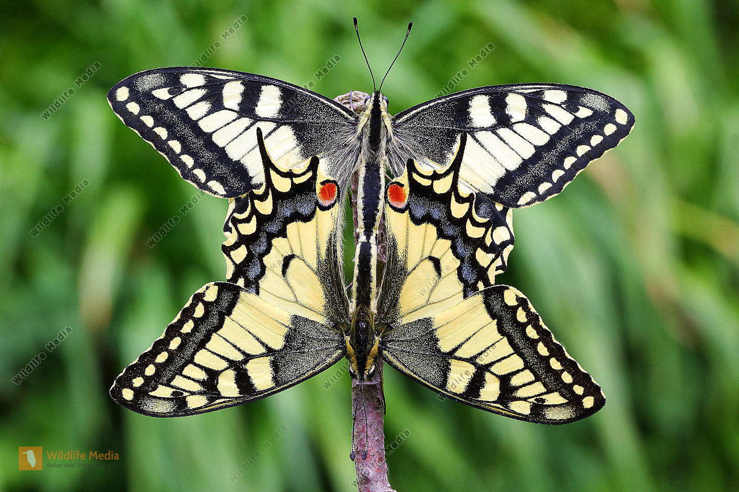 Eine Große Pechlibelle sitzt an einem Grashalm