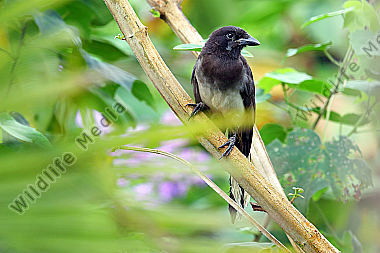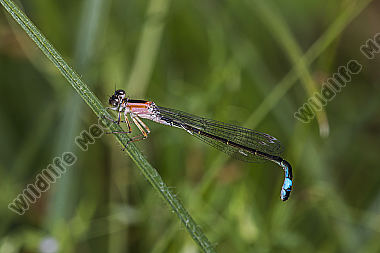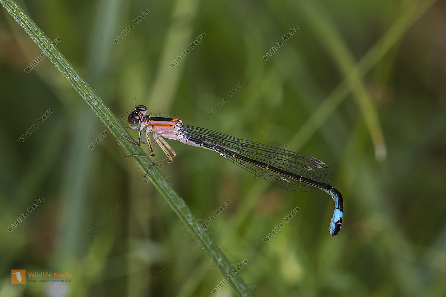 Glänzende Ninsenjungfer sitzt an einem Grashalm