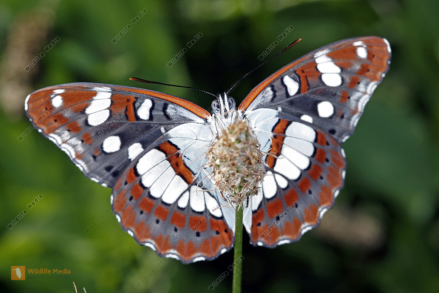 Kleiner Fuchs mit ausgebreiteten Flügeln an einer Blüte