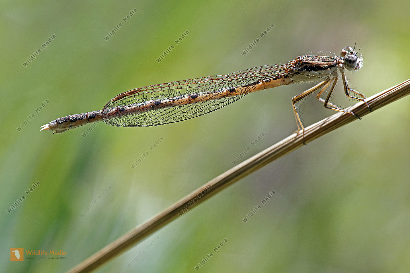 Ein kleines Wiesenvögelchen saugt an einer Blüte