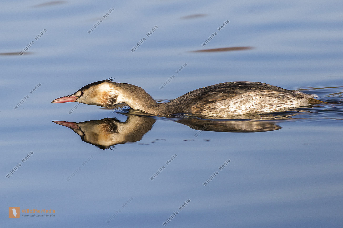 Haubentaucher auf dem Ökosee in Dillingen im Saarland