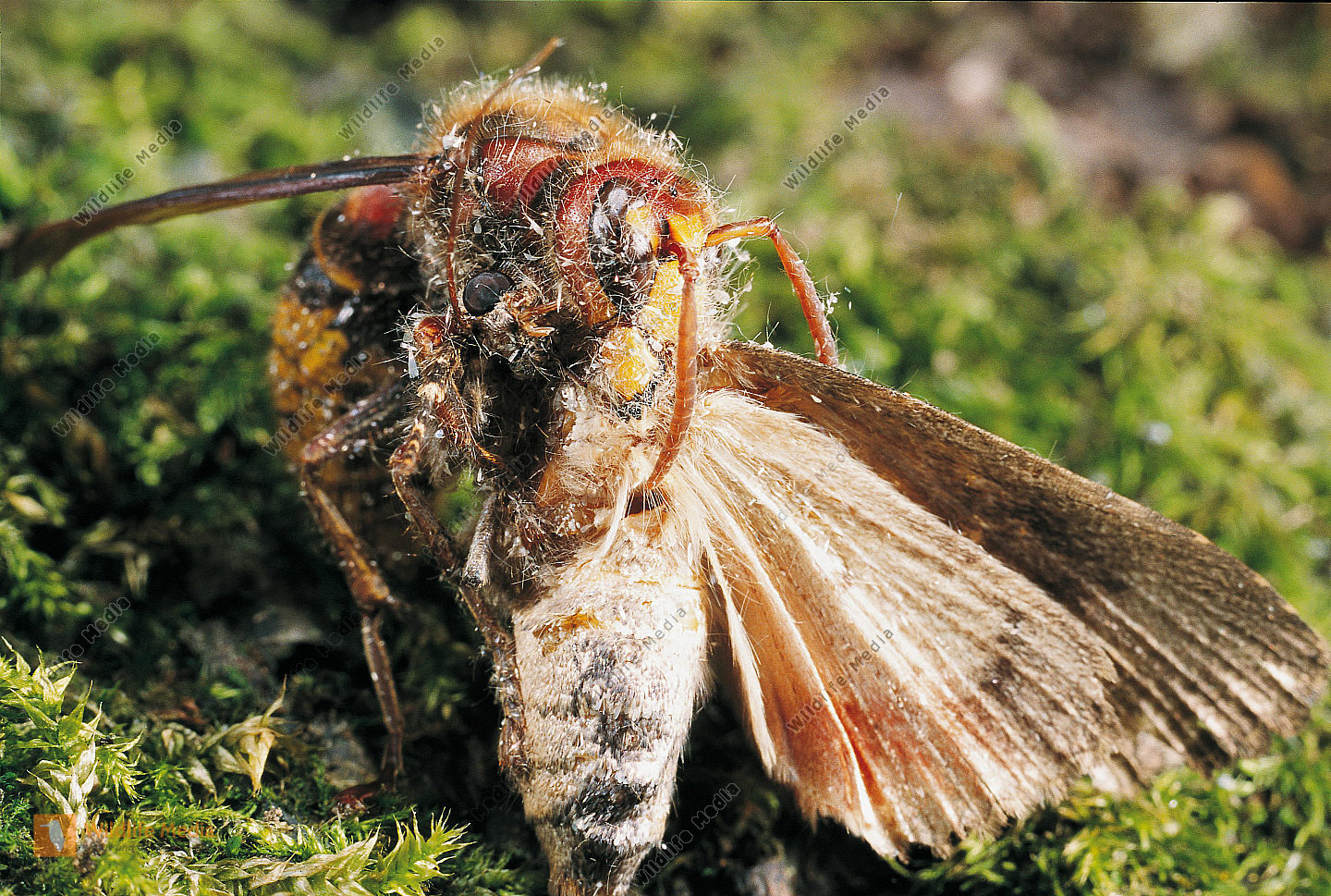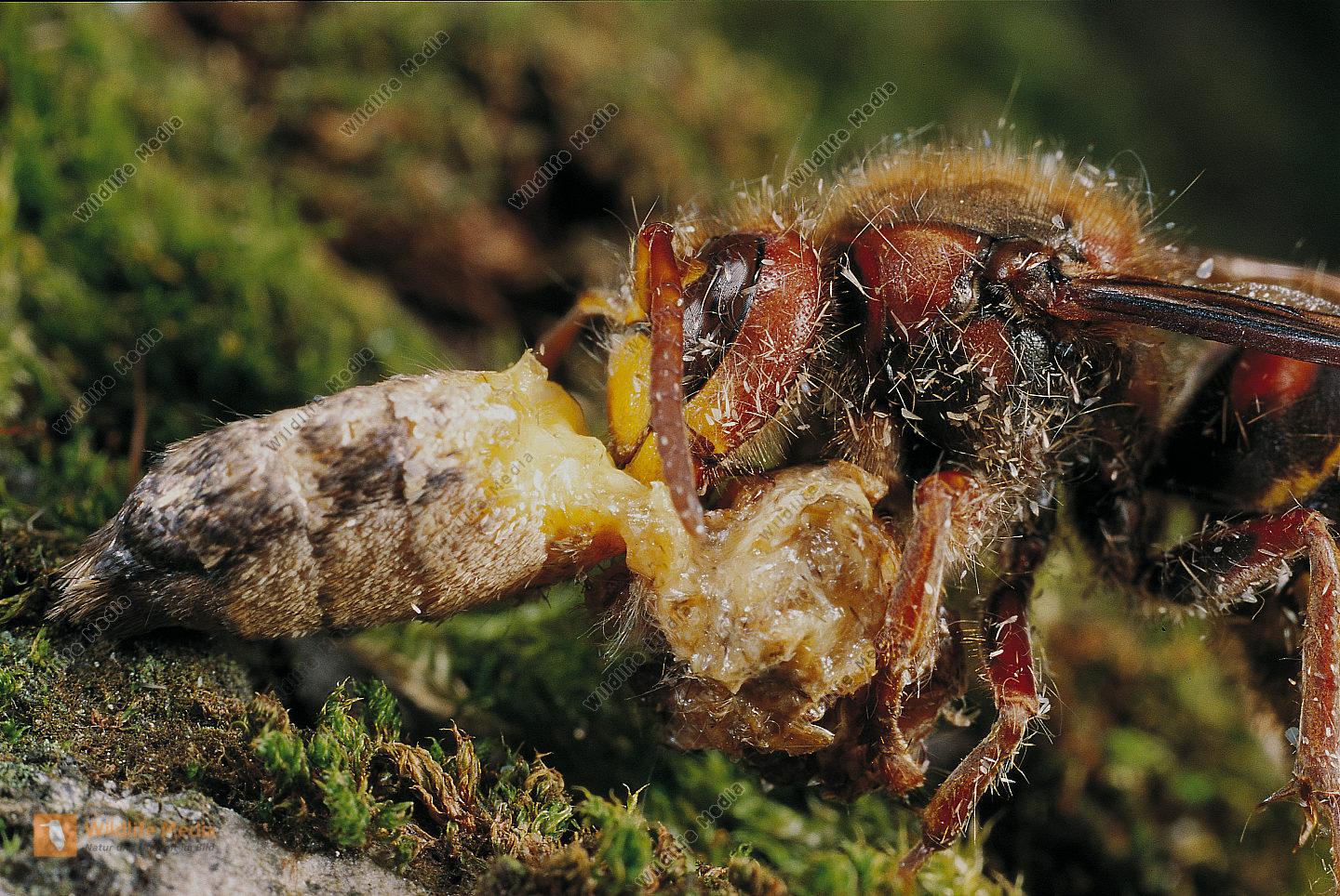 Hornisse Vespa crabro Beute Schmetterling