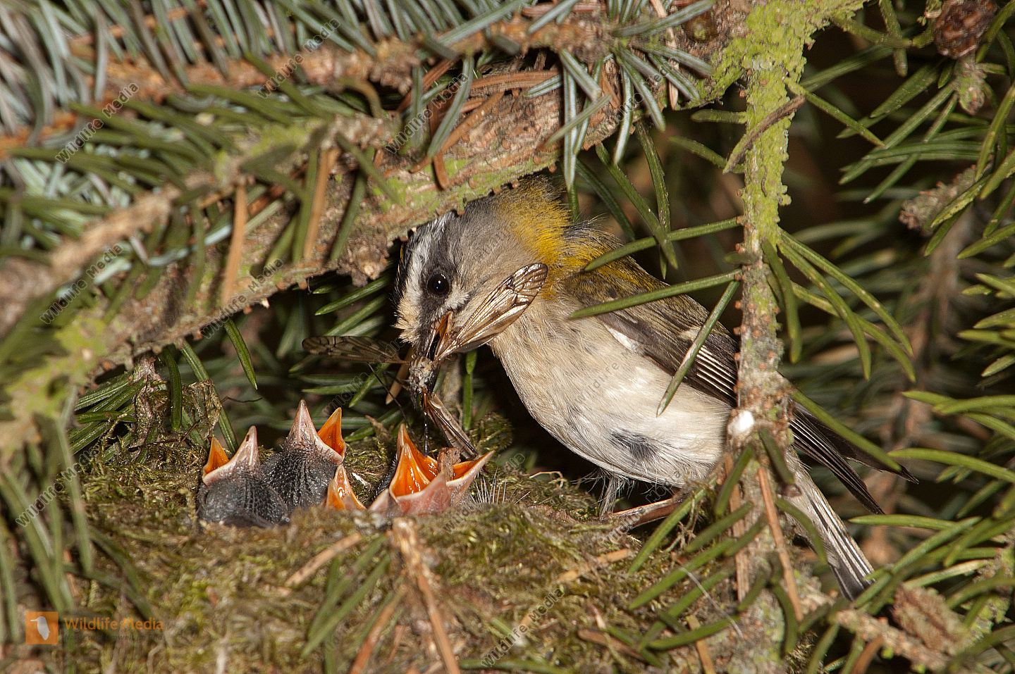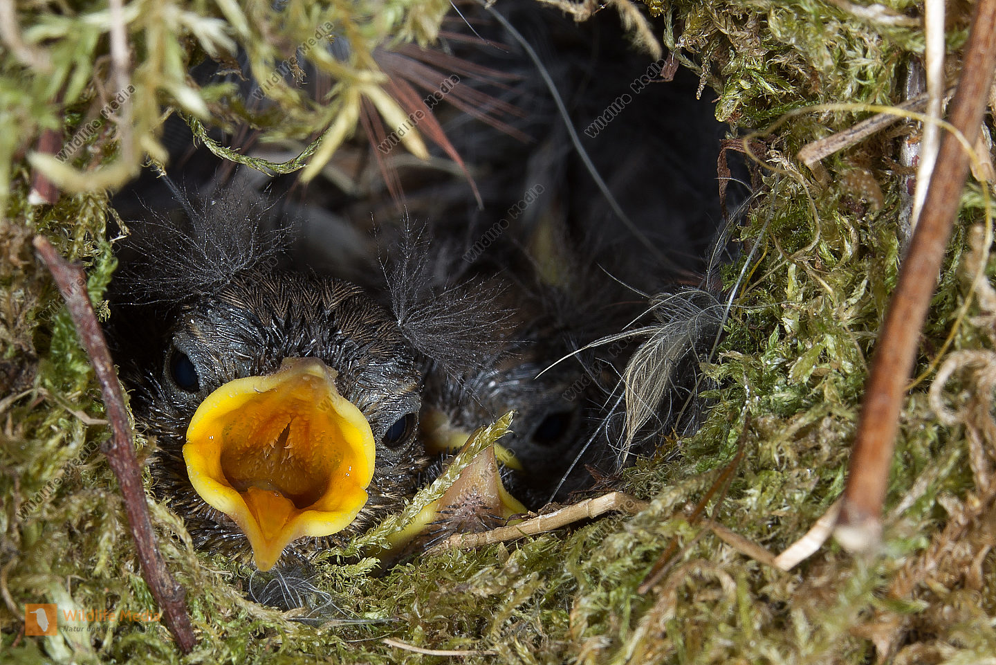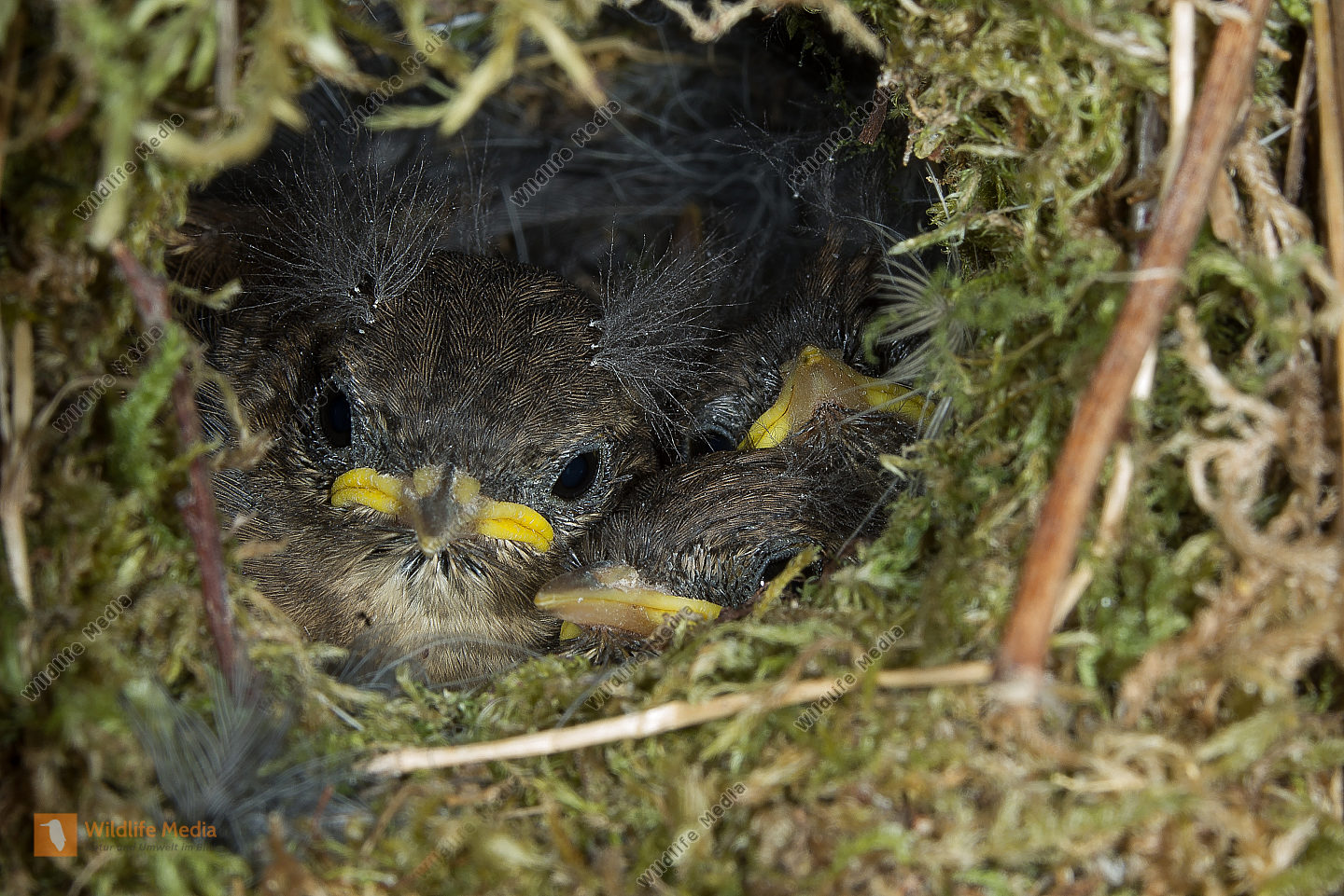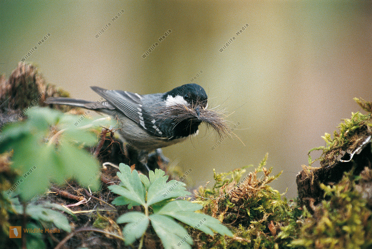 Tannenmeise Periparus ater Nestbau Nistmaterial Brut
