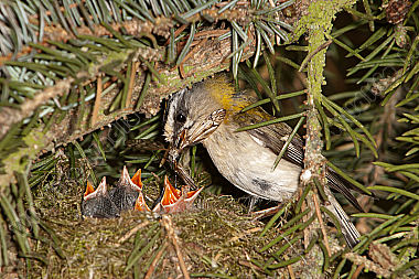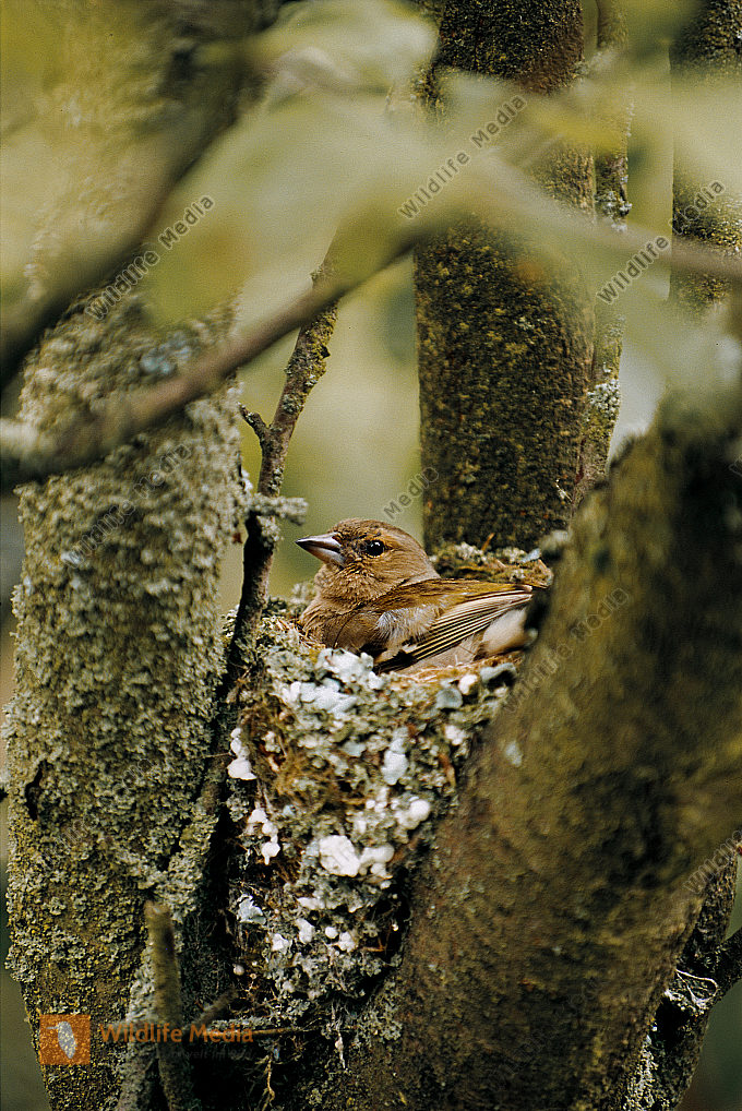 Buchfink Fringilla coelebs Weibchen Nest Brut