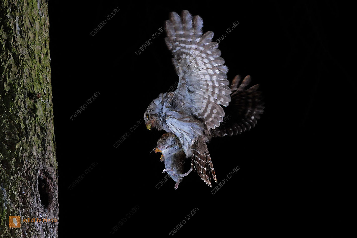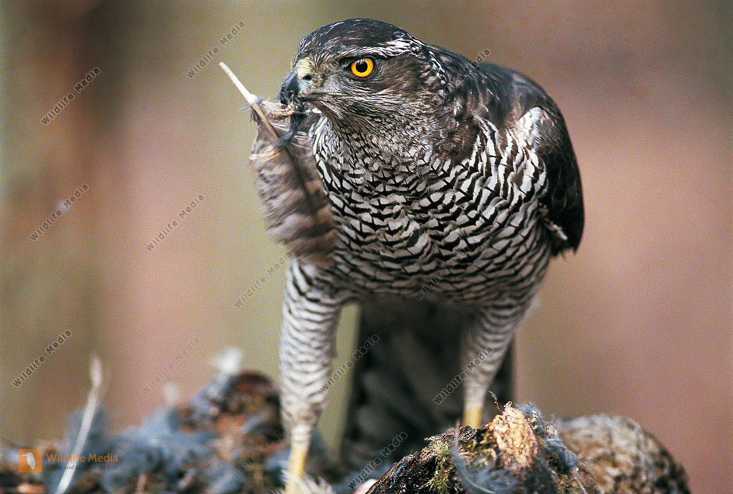 Habicht Accipiter gentilis Weibchen mit Beute Waldkauz Strix aluco