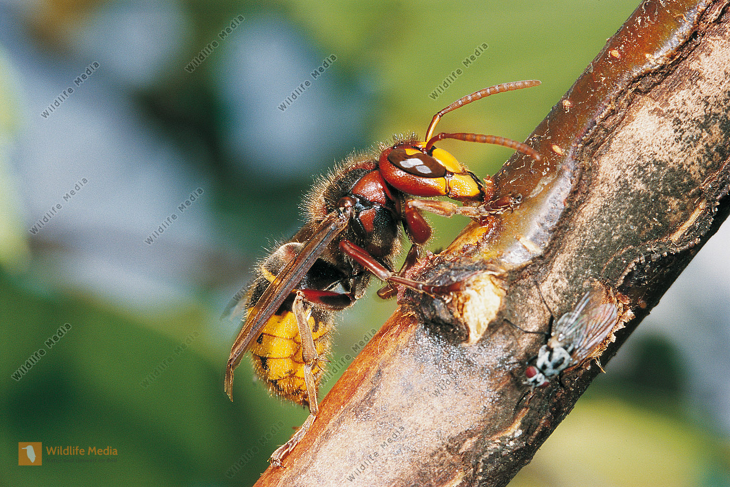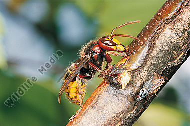 Hornisse Vespa crabro Arbeiterin nimmt Baumsaft auf