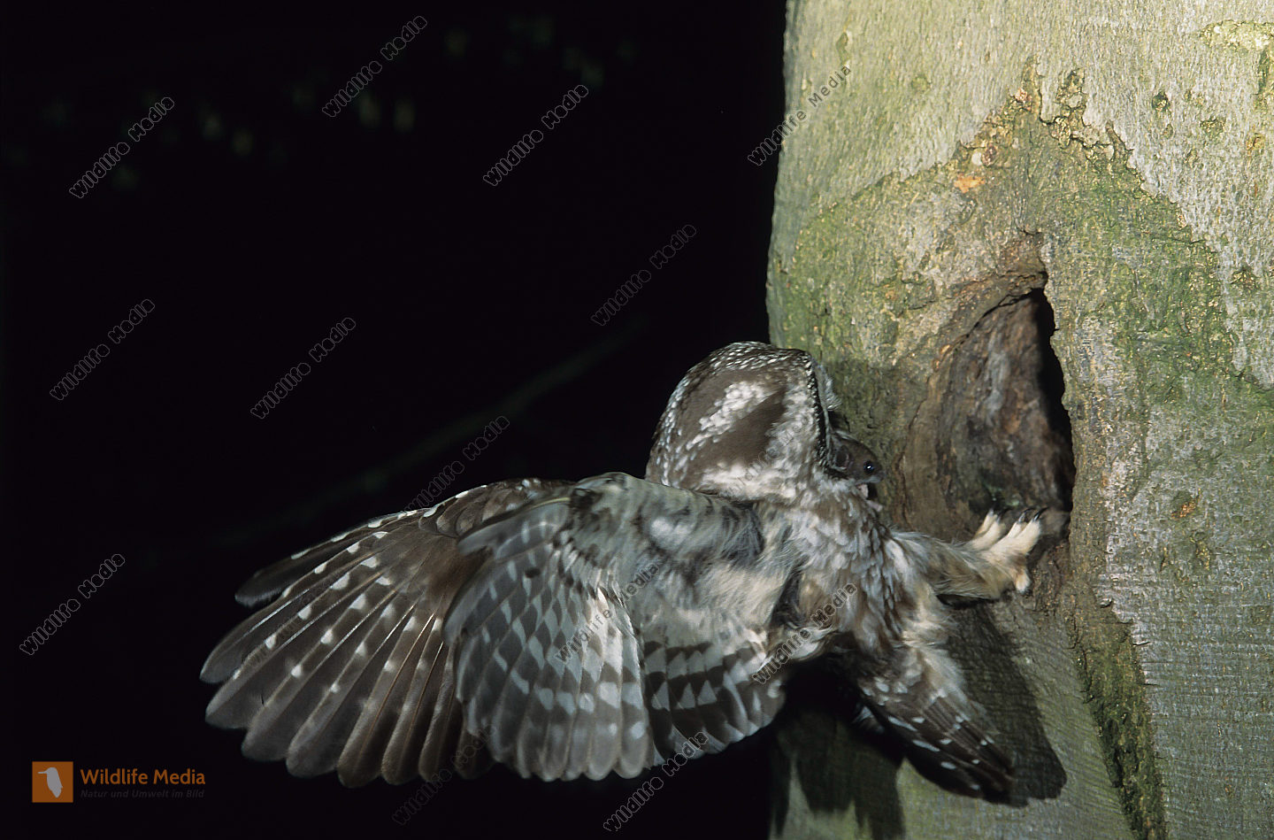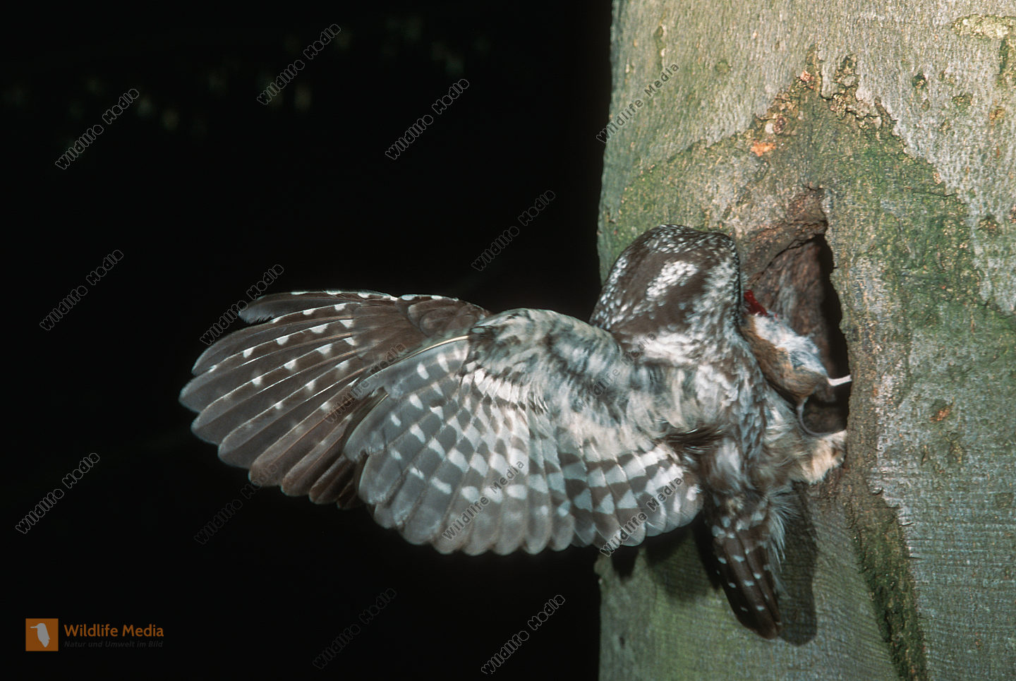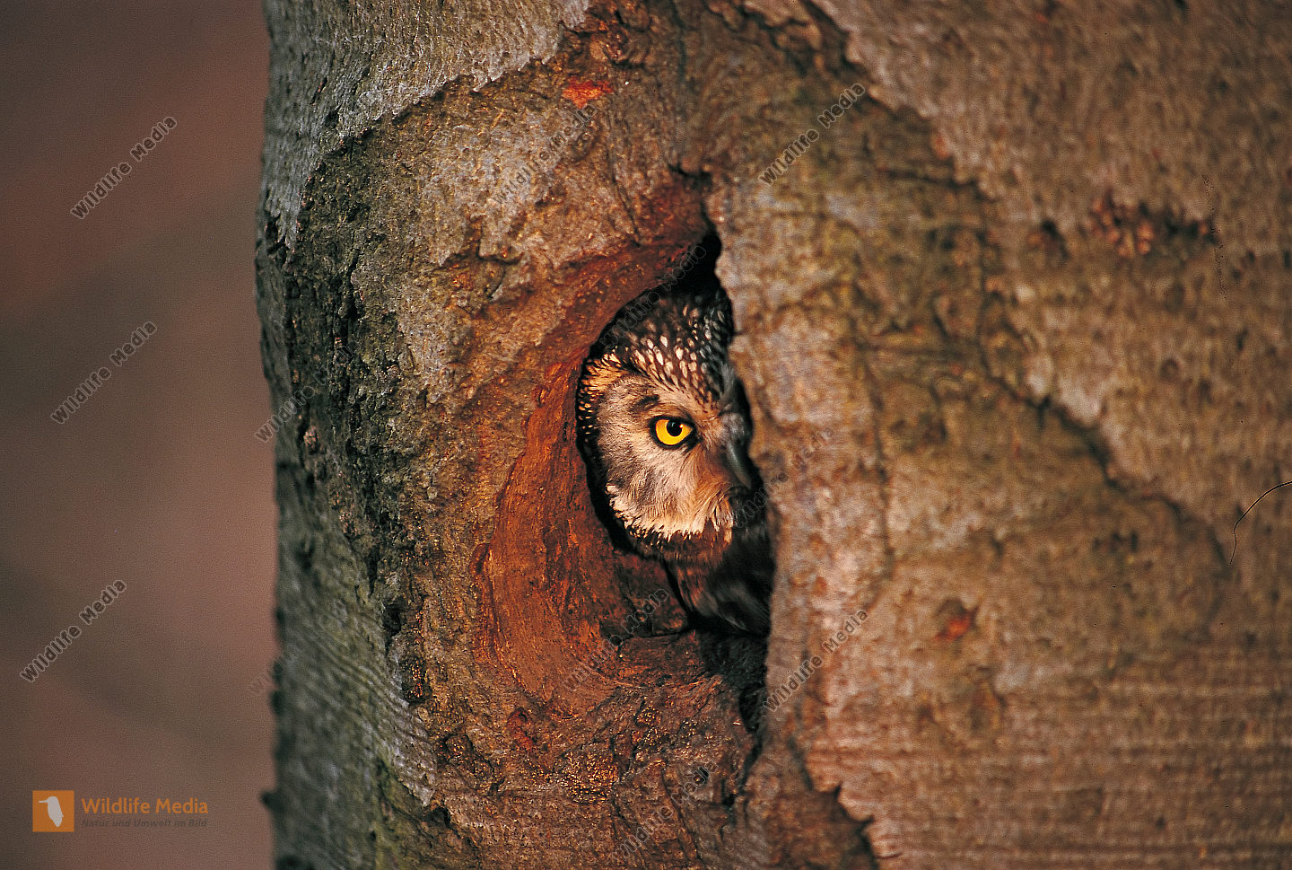 Raufußkauz Aegolius funereus Bruthöhle Schwarzspecht Rotbuche
