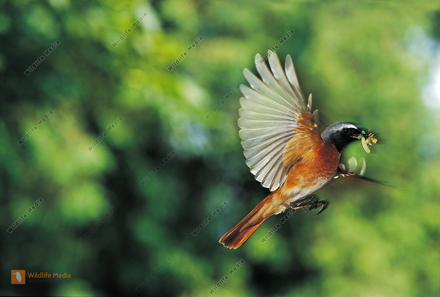 Flug Gartenrotschwanz Männchen Phoenicurus phoenicurus