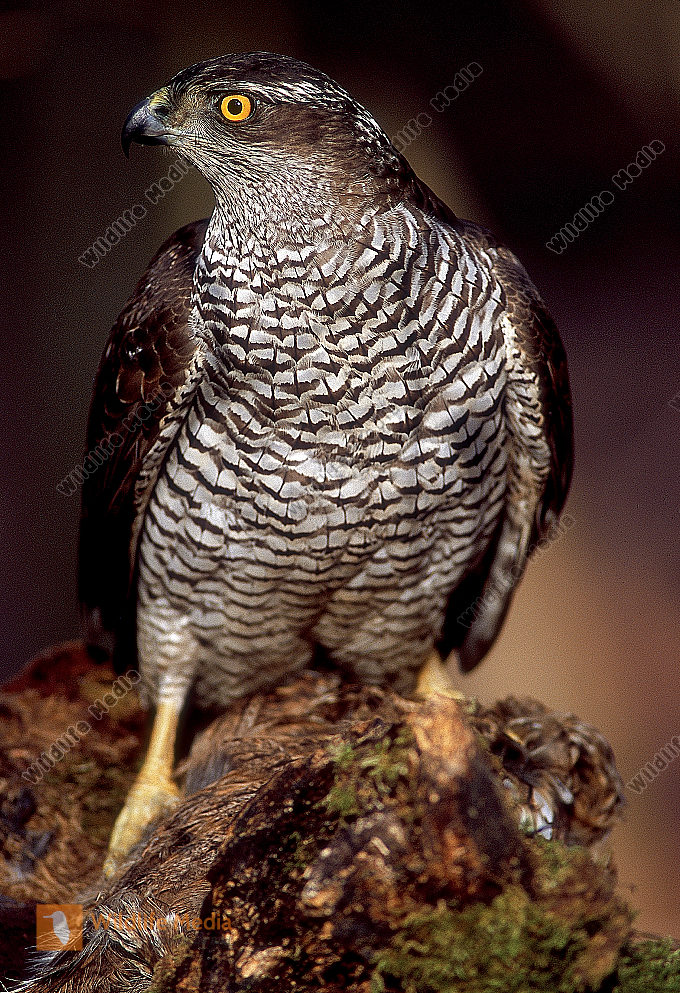 Habicht Accipiter gentilis Weibchen mit Beute Waldkauz