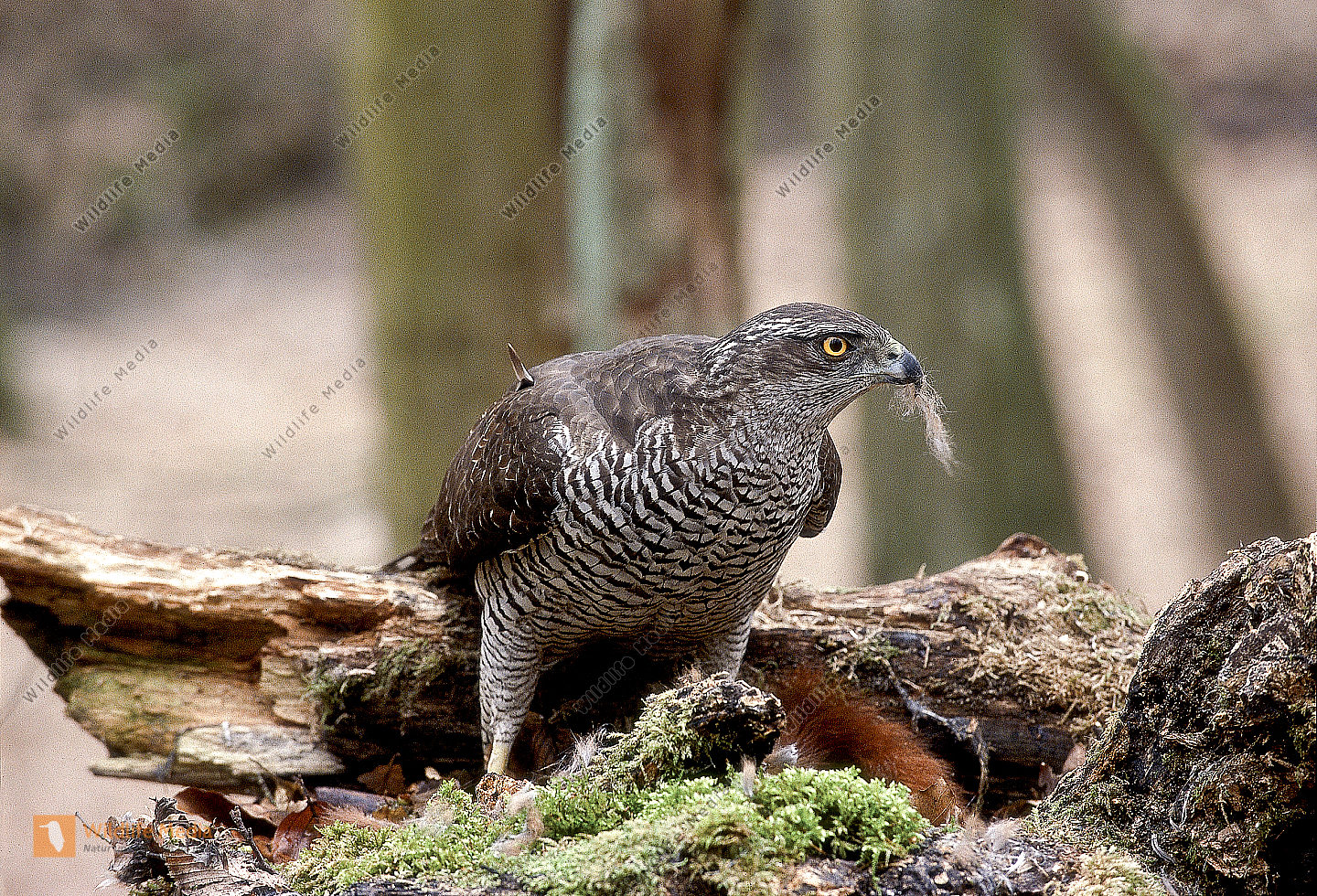 Habicht Accipiter gentilis Beuterest Eichhörnchen Sciurus vulgaris