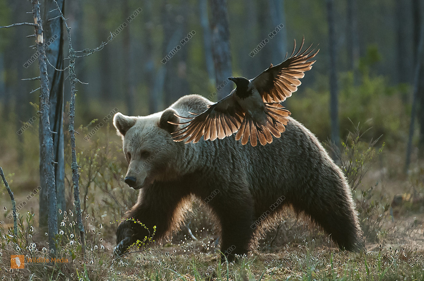 Braunbär Ursus arctos Finnland Corvus corone Nebelkrähe