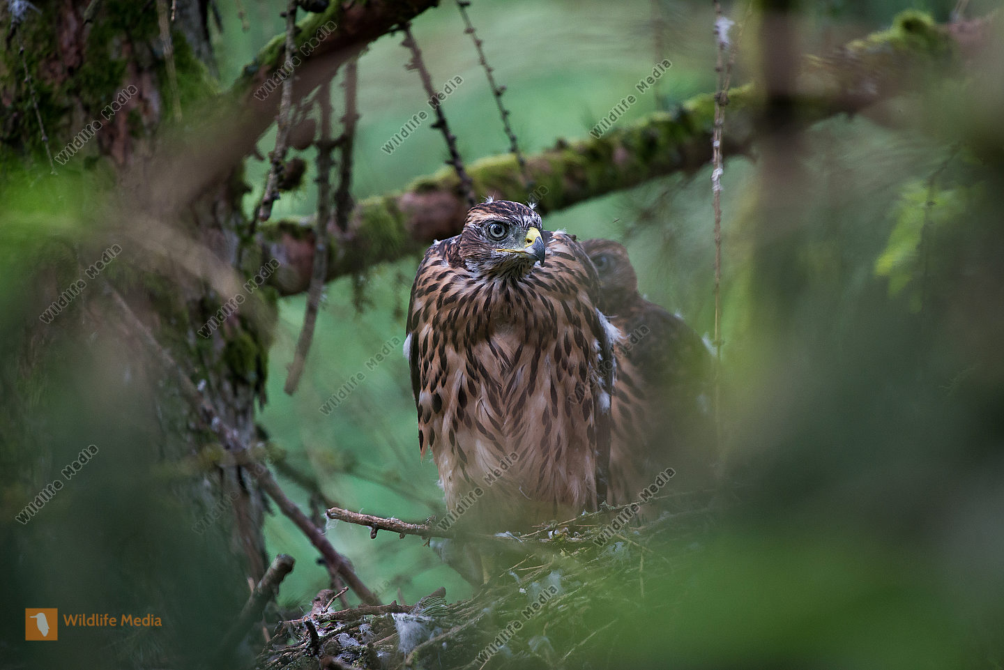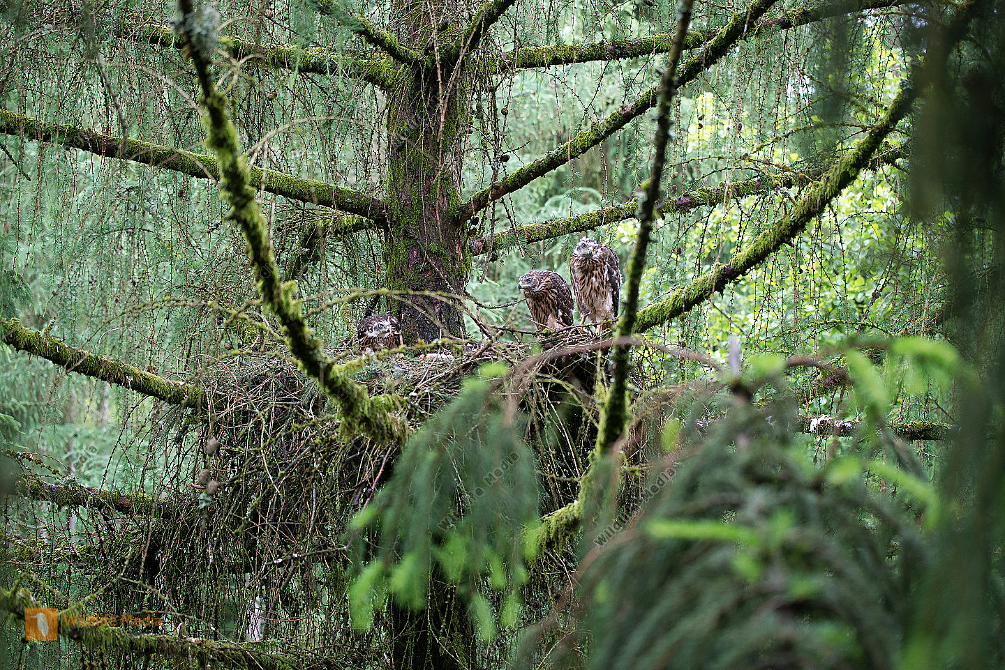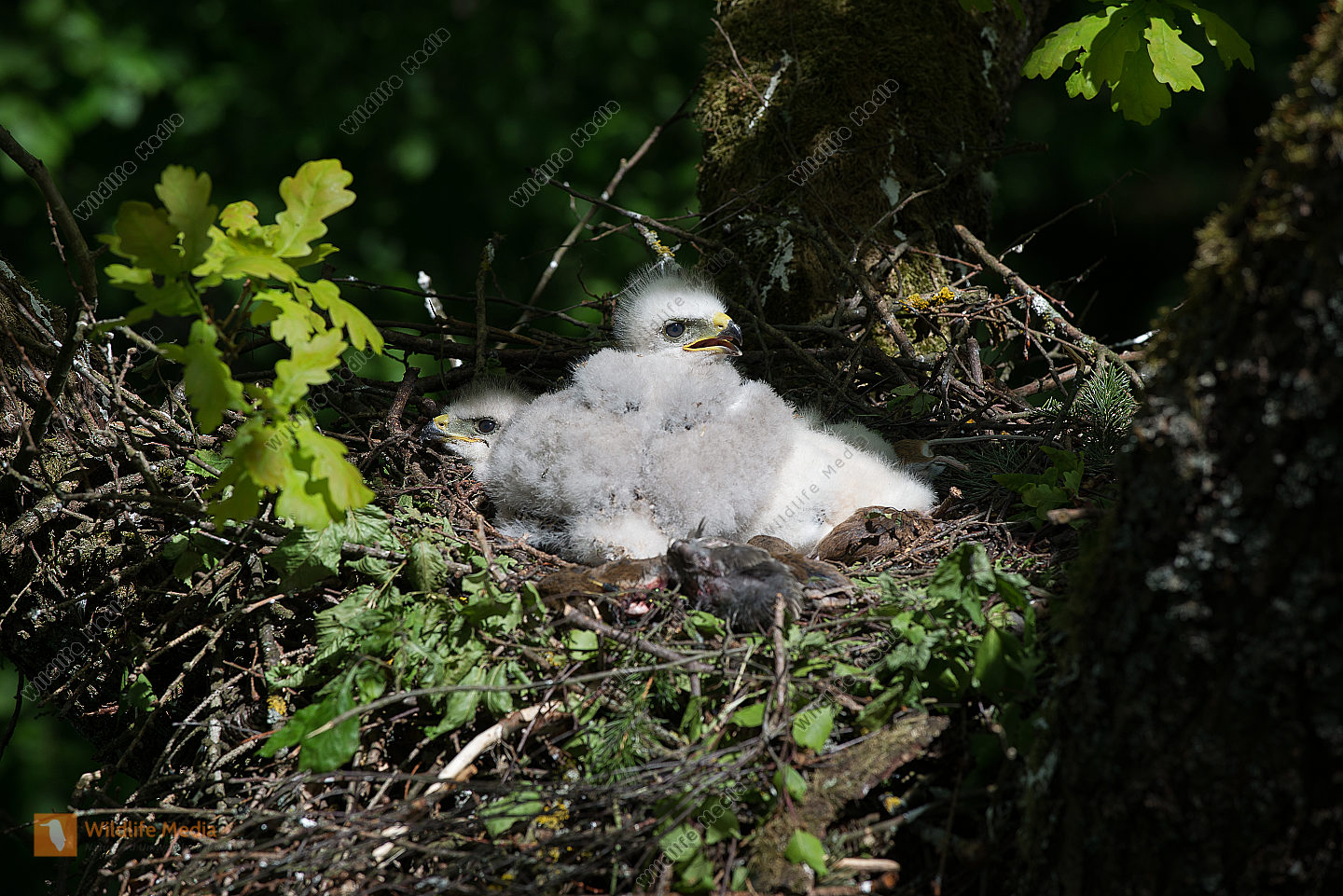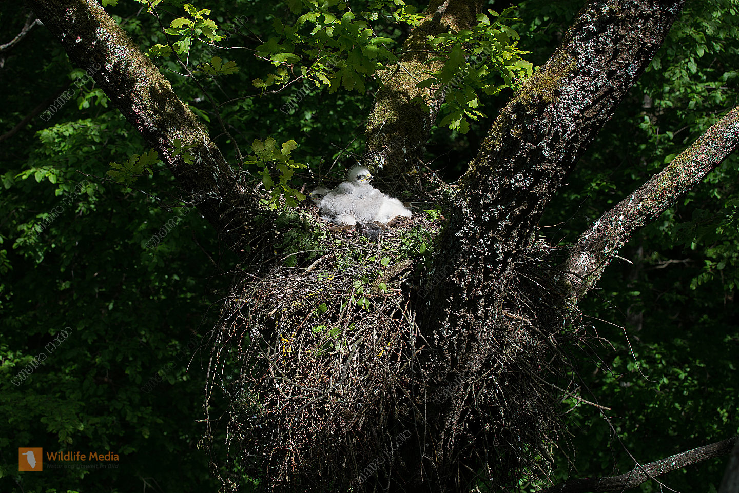 Mäusebussard Buteo buteo Jungvögel Nest Horst Eiche