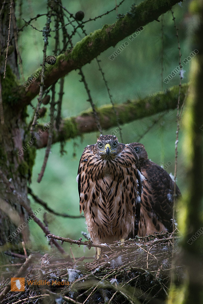Habicht Accipiter gentilis fast flügge Jungvögel am Horst
