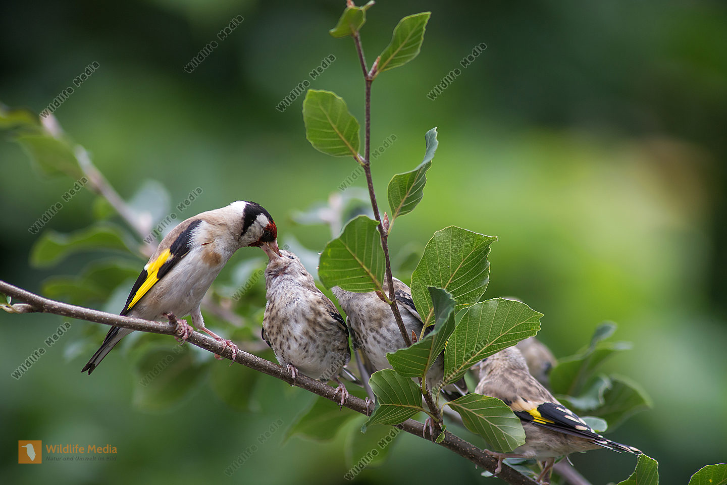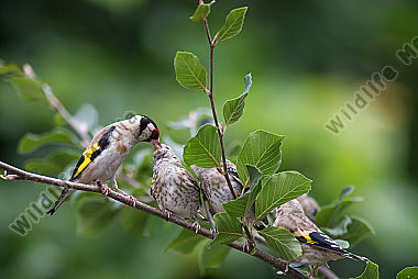 Stieglitz Carduelis carduelis Fütterung Junge