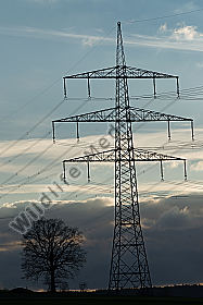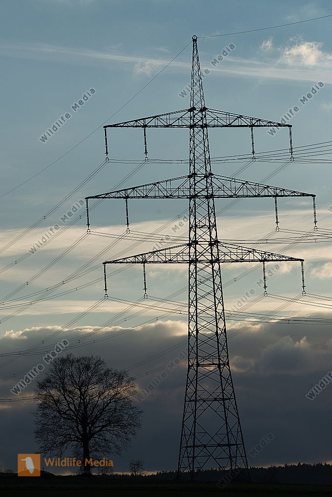 Baum Eiche Frühjahr hochspannungsmasten Symbol Umweltzerstörung